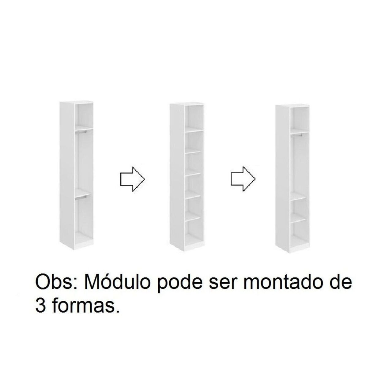 Estilo: Moderno | Modular: Sim | Peso (kg): 44 | Garantia: 03 Meses | Altura (cm): 240 | Acabamento: Pintura Texturizada Uv | Largura (cm): 90 | Possui Pés: Não | Possui Portas: Não | Tipo De Porta: Correr | Possui Gavetas: Não | Possui Espelhos: Não | Profundidade (cm): 53 | Escala De Brilho: Fosco | Serviço Montagem: 114259443 | Origem Do Produto: Nacional | Possui Cabideiros: Sim | Ambiente Principal: Quarto | Material Principal: Mdf | Tipo De Guarda-roupa: Closet | Material Da Prateleira: Mdf | Tipo De Módulo Do Móvel: Closet | Acabamento Da Prateleira: Pintura Texturizada Uv | Espessura Da Estrutura (mm): 15 | Peso Máximo Por Prateleira: 10 | O Módulo Pode Ser Utilizado Individualmente: Sim | Fabricante: Belmax | Marca: Belmax | Composição: Mdf | Cor Interna: Branco | Cor Do Produto: Branco | Itens Inclusos: 1 Módulo, Kit Ferragens E Manual De Montagem | Cor Predominante: Branco | Linha Ou Coleção: Altezza | Quantidade De Portas: Não Possui | Quantidade De Gavetas: Não Possui