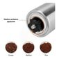 Moedor café inox 21 cm prata . Moedor de café manual em inox e cerâmica. . Apresentação . .O moinho de café é para os entusiastas que procuram algo eficiente e de altíssimo custo-benefício. Com ele, moer os grãos de café é super prático e simples, basta adicionar os grãos no depósito abaixo da manivela, ajustar o nível de moagem de sua preferência e girar continuamente a manivela no sentido horário. Em poucos minutos o café moído estará lhe esperando no compartimento de vidro. . .O moinho é equipado com lâminas de cerâmica em formato cônico, que dá mais consistência na hora da moagem, e por ser manual, é gerado menos calor no processo, o que evita a indevida alteração das características do café gourmet.. .Moedor de café artesanal, feito em aço inox e com manivela de metal. Possui recipiente com capacidade de 90g para armazenar o café moído. Ideal para quem aprecia um café fresquinho moído na hora. O produto é bonito, tem materiais de boa qualidade e design moderno, pode ser usado como item de decoração ou para presente.. . Instruções de uso . .. Abra a tampa e coloque os grãos,.. Ajuste a lâmina embaixo da parte superior para espessura desejada,.. Acople a manivela e o recipiente da parte inferior,.. Gire a manivela para acionar a lâmina,.. Ao final o café moído estará no recipiente inferior,. . Especificações . .- altura: 21cm (da base à manivela).- diâmetro: 5cm.- peso: 245g. . Itens inclusos . .1 - moedor de café manual inox 21cm marca:Clink