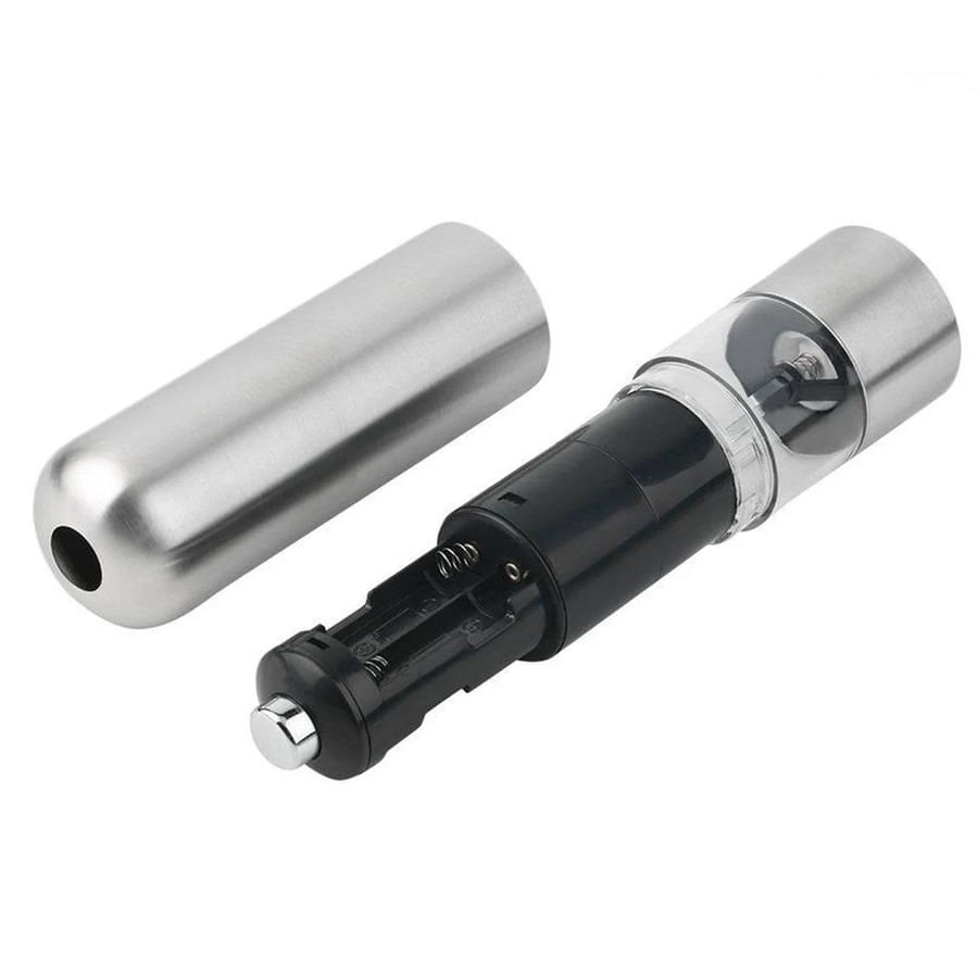 Moedor Eléctrico De Sal Ou Pimenta Aço Inox Com Uma Leve Pressão No Botão Superior Você Distribui Pimenta Em Seus Pratos.também Pode Salgar Sua Carne De Churrasco Com Sal Grosso Moído. Use-o Sua Mesa E Dê Um Requinte Na Sua Refeição.fácil De Usar E Fácil De Limpar. Especificações/características Do Produto- Regulagem Para O Tamanho Dos Grãos. - Utiliza 4 Pilhas Aa (não Acompanham). - Corpo Externo Em Aço Inox. - Mecanismo Interno Em Cerâmica. - Dimensões 23 X 5,5 Cm. - Peso 280 G. Item Incluso: - 1 Moedor Eléctrico De Sal Ou Pimenta Aço Inox Intgração Shopmix Id : 32642