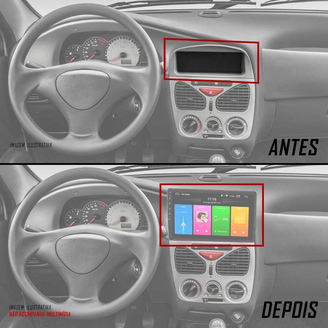Moldura Painel 2 Din 9 Polegadas Fiat Palio, Siena, Strada, Weekend 2001 Até 2003 Cinza