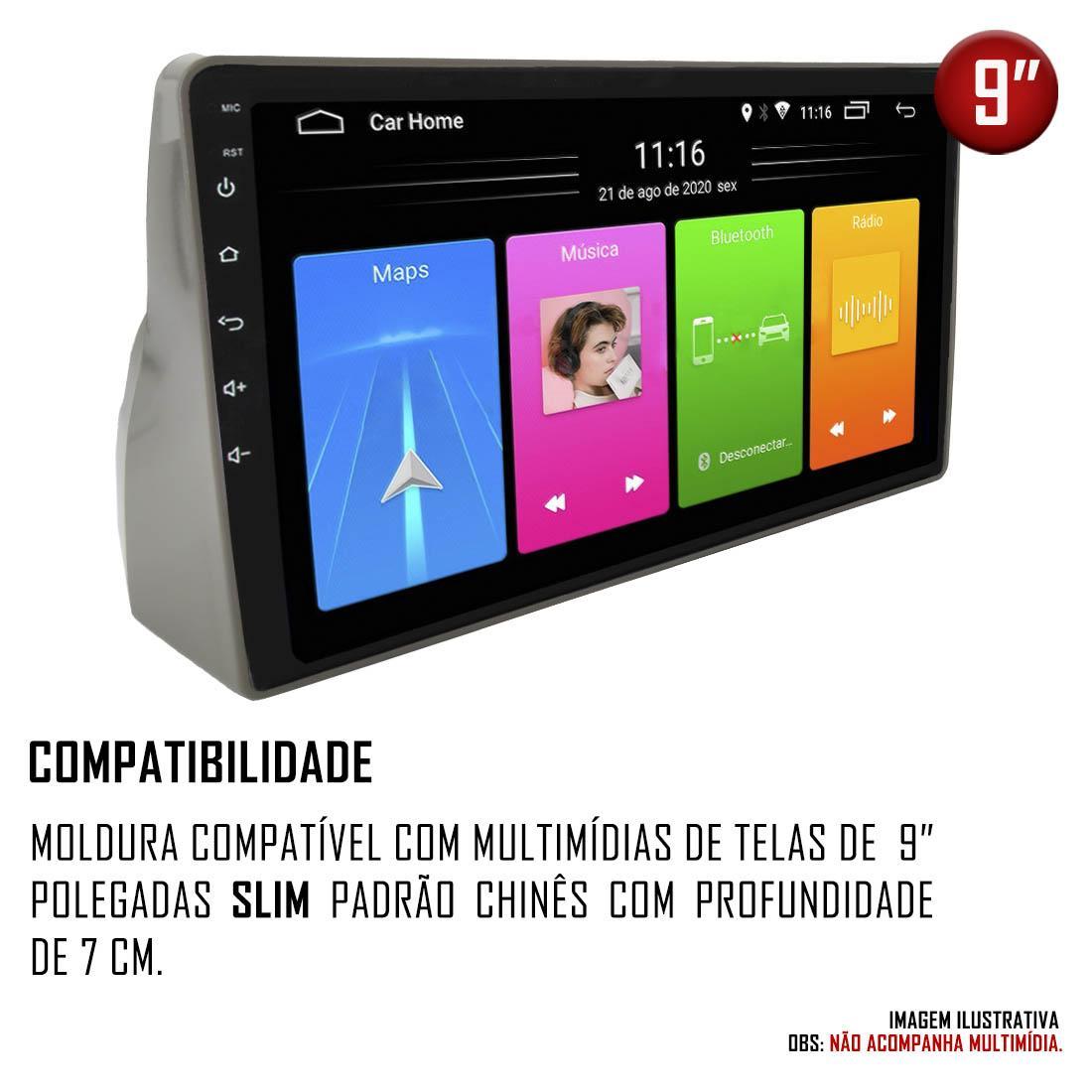 moldura 2 Din 9 Polegadas Fabricada Com Tecnologia De Alta Qualidade E Proporciona Um Design Com Acabamento Impecável Para Seu Veículo.