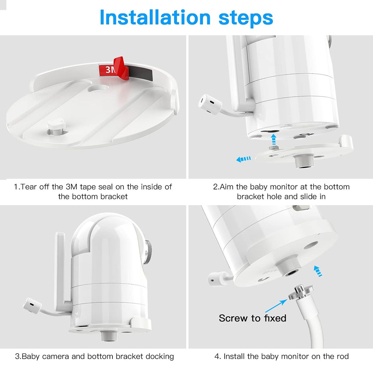 - Estável: O Suporte Do Clipe Inferior Pode Ser Montado Com Segurança Na Mesa Final, Berço, Cama, Prateleira, Peitoril Da Janela Ou Outros Móveis, Etc. Uma Base De Silicone Antiderrapante Não Arranhará A Superfície De Seus Móveis.