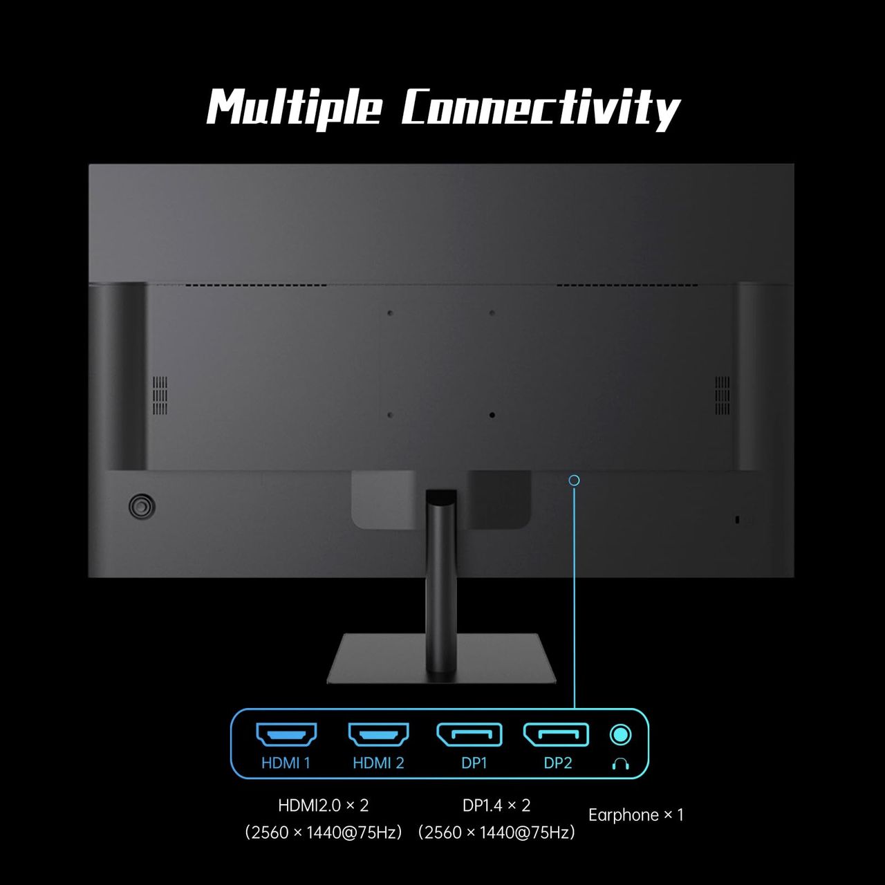 Este Monitor De Computador De 32 Polegadas Está Equipado Com Várias Opções De Conectividade, Incluindo HDMI2.0* 2 (2560 × 1440 @75hz), DP1.4* 2 (2560 × 1440 @75hz) E Fone De Ouvido*1. Você Pode Conectar Facilmente Seu Laptop, Pc Ou Console De Jogos E Desfrutar De Uma Experiência Perfeita.