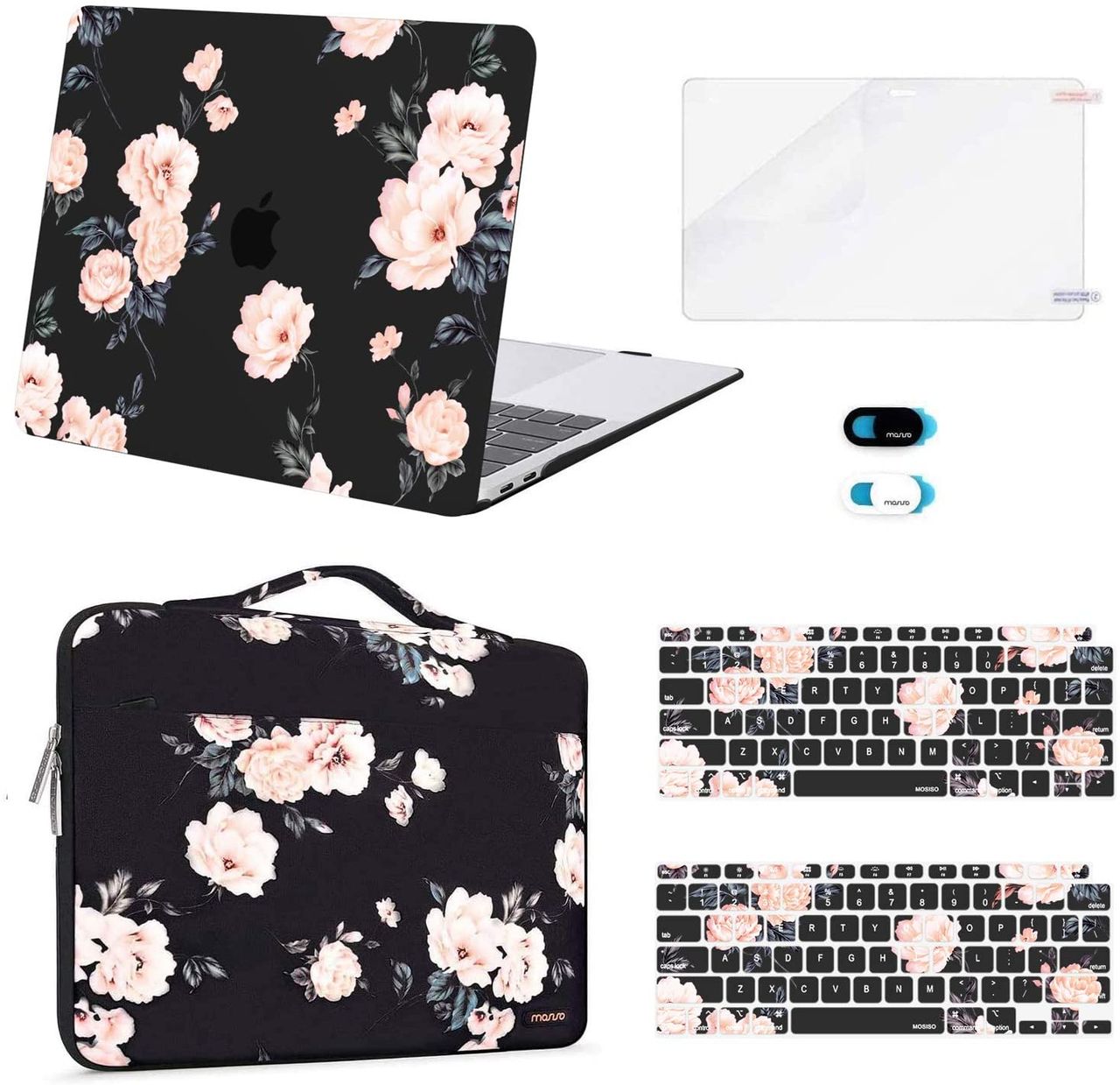 Mosiso Compatível Com Macbook Air 13 Polegadas Case 2020 2018 Lançamento A2337 M1 A2179 A1932 Retina Display Touch Id, Plástico Camellia Hard Shell&,bag&,keyboard Skin&,webcam Cover&,screen Protector, Preto