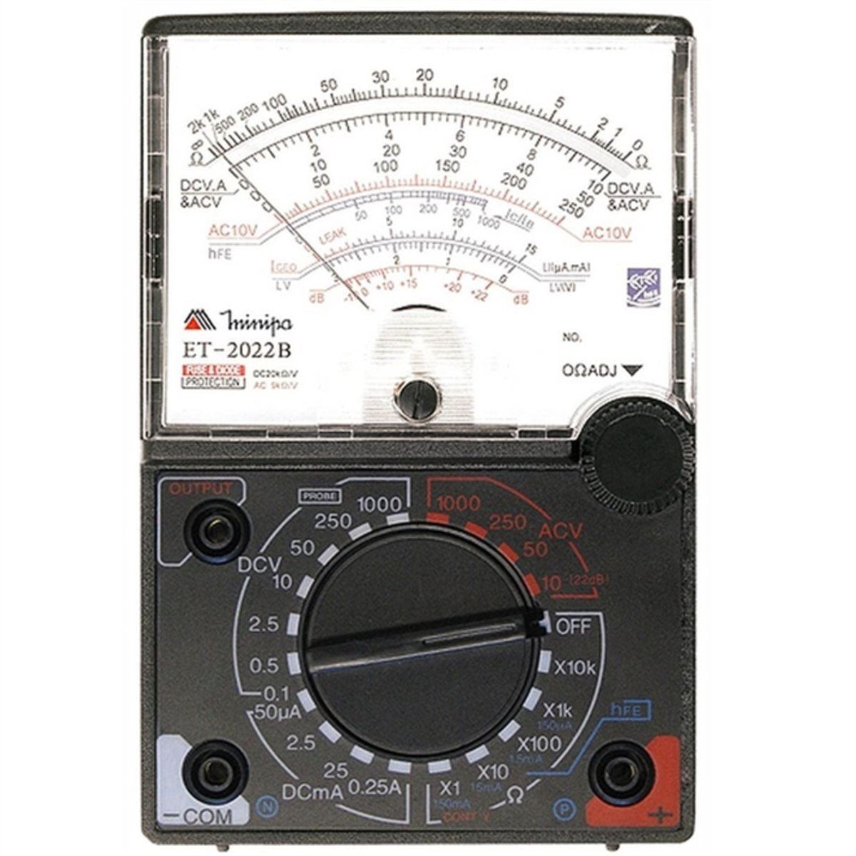 Multímetro de baixo custo e dimensões reduzidas com diversos recursos para aplicações em ambientes monofásicos, bancadas, hobby. Multímetro voltado para aqueles que não abrem mão da velocidade de resposta e do consumo de bateria em medições de tensão ou corrente. Mede tensão AC e DC, corrente DC, resistência, decibel, teste de fuga de transistores e Iceo.Produtos de decoração não inclusos. Imagens meramente ilustrativas.: Tensão DC: 0,1/ 0,5/ 2,5/ 10/ 50/ 250/ 1000VSensibilidade DC: 20k/ VTensão AC: 10/ 50/ 250/ 1000VSensibilidade AC: 9k/ VCorrente DC: 50u/ 2,5m/ 25m/ 250mAResistência: 2k/ 20k/ 200k/ 2M/ 20MDecibel: -10 ~ +62dBPrecisão Básica: 4%Alimentação: 2x1,5V AA / 1x9VMostrador: AnalógicoMarca: MinipaConteúdo da embalagem: 01 MultímetroDimensões aproximadas do produto: 14,8 x 10 x 3,5 cmDimensões aproximadas da embalagem : 10 x 15 x 5 cmPeso aproximado do produto: 0,28 kgPeso aproximado da embalagem: 0,3 kgInformações Adicionais: Aplicações em ambientes monofásicos, bancadas, hobby
