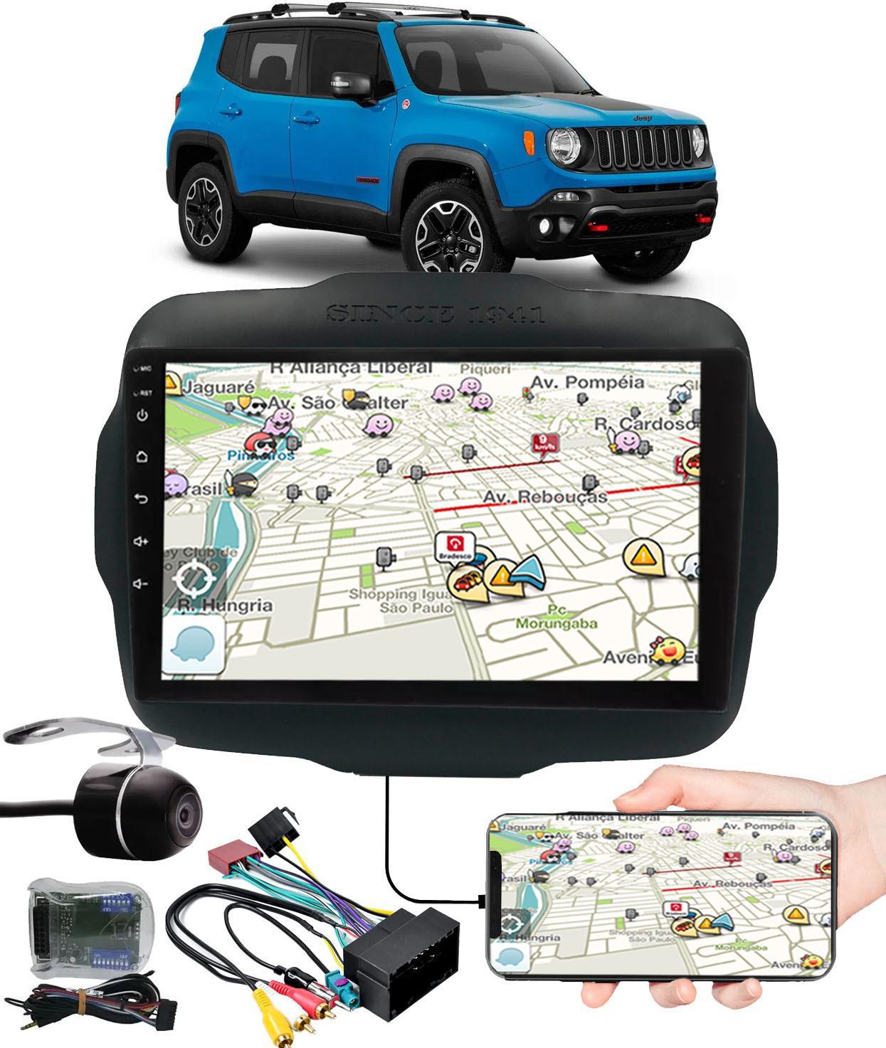 Kit Combo Multimídia 9 Polegadas + Moldura 2 Din + Interface Comando De Volante + Chicote Ligação + Chicote Adaptador Antena + Câmera De Ré Para Jeep Renegade