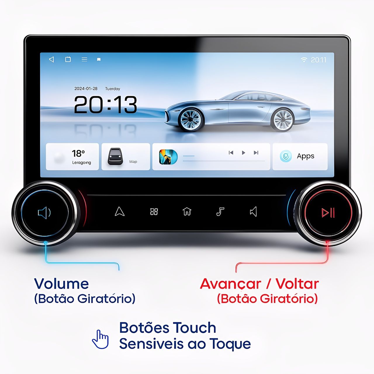 A Multimídia Mp5 10.1” Qled Ips Oferece Tecnologia, Conectividade E Qualidade De Imagem Superior. Com Design Moderno E Tela Sensível Ao Toque Em Vidro, Ela Transforma O Painel Do Seu Carro Em Um Verdadeiro Centro Multimídia Completo.