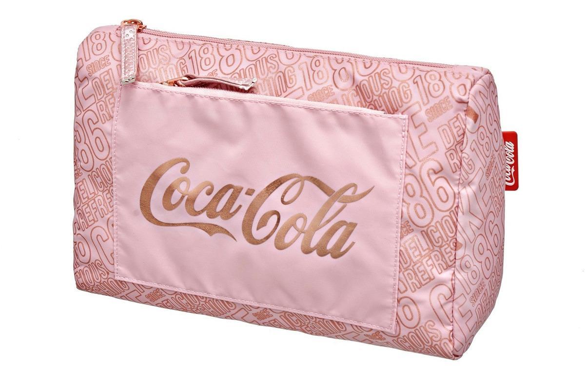 necessaire Coca-cola Perfeita Para Todas As Ocasiões, É Produzida Com Material Resistente, Além De Possuir Bastante Espaço Para Guardar Seus Pertences. Coleção Confeccionada Em Poliéster Estampado, Logo Em Foil Dourado E Puxadores De Zíper Personalizado, Com Bolso Externo.