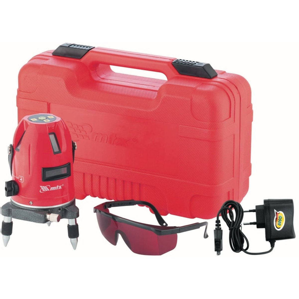 Nível à laser Automático 5 linhas MTX 350359 com maleta e óculos..Descrição:.Nível Laser marca MTX é um dispositivo que permite que você construa um planos horizontais, verticais e inclinados. Gama de projeção da linha de laser (feixe) é de 10 m, e a projeção do ponto laser pode ser a uma distância de 50 m. Nível de laser de potência a partir de dois tipos de sensores de nível que utilizam baterias AAA...Características:.- Nível a Laser 5 linhas.- Autonivelante.- 4 Saídas de linha vertical.- 1 Saída de linha horizontal.- Botão Liga / Desliga.- Base ajustável.- Ajuste preciso 360º.- Bolha de nível iluminado.- Clique duplo para acionamento das 4 linhas verticais.- 2 Níveis de intensidade do laser.- Enxaixe para tripé..Especificações:.- Marca: MTX.- Modelo: 350359.- Alcance: 10m ambientes internos.- Auto nivelamento: +/- 3,5º.- Aviso sonoro de desnivelamento.- Utiliza 3 pilhas AA (incluso).- Fonte bivolt (incluso).- Óculos para melhor visão do laser (incluso).- Acompanha maleta para transporte.- Medidas: 10cm diâmetro X 19,5cm altura.- Peso: 1.135g...Itens Inclusos:.- Nível a Laser MTX 350359.- Óculos.- Maleta para transporte