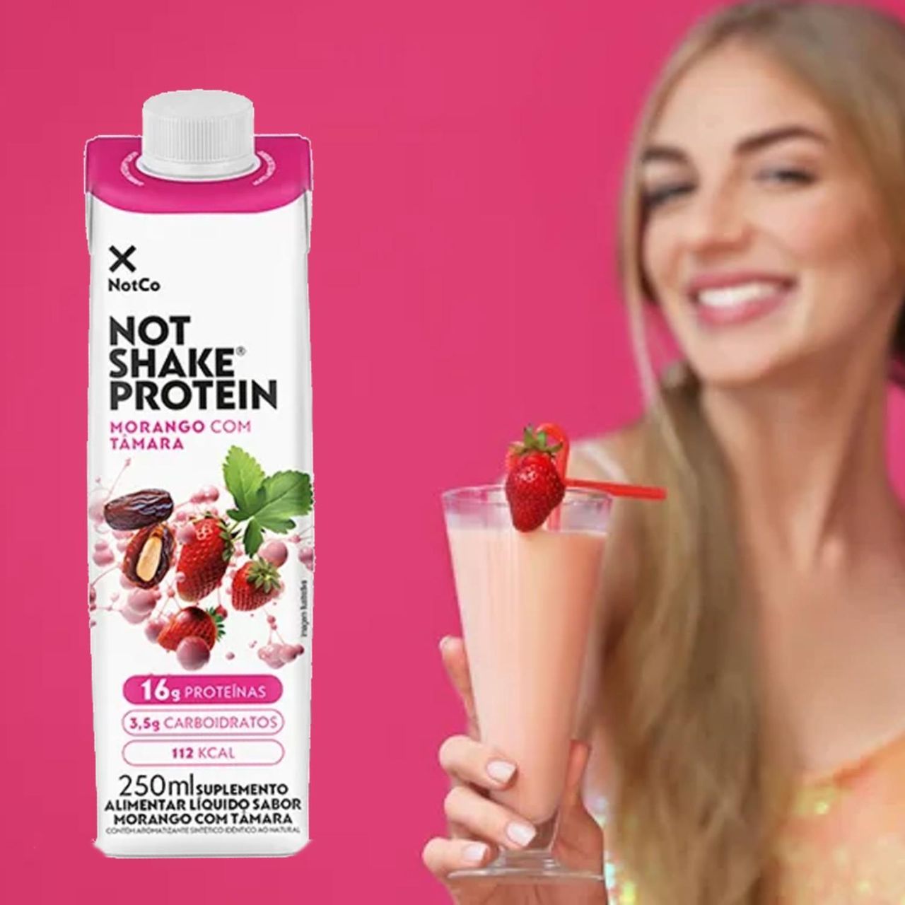 Not Shake Protein 16g Morango Com Tâmara 250ml
