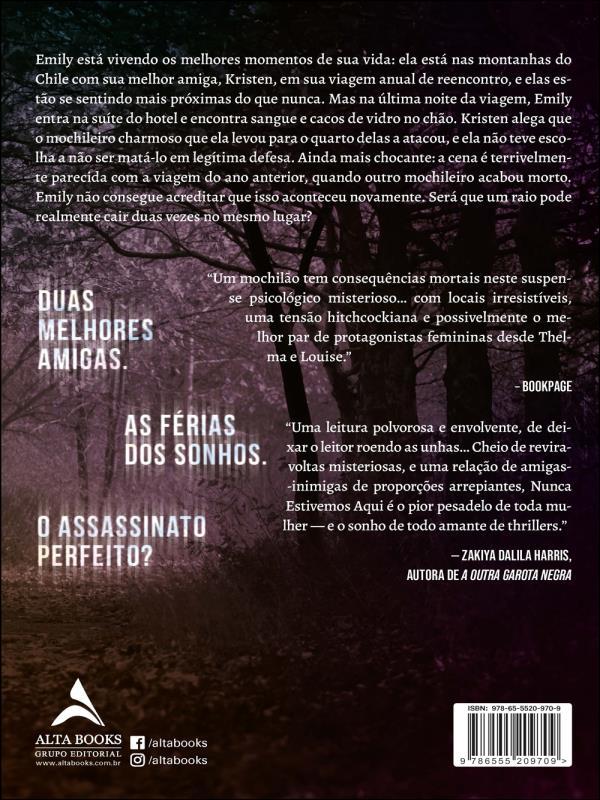 emily Está Vivendo Os Melhores Momentos De Sua Vida: Ela Está Nas Montanhas Do Chile Com Sua Melhor Amiga, Kristen, Em Sua Viagem Anual De Reencontro, E Elas Estão Se Sentindo Mais Próximas Do Que Nunca. Mas Na Última Noite Da Viagem, Emily Entra Na Suíte Do Hotel E Encontra Sangue E Cacos De Vidro No Chão. Kristen Alega Que O Mochileiro Charmoso Que Ela Levou Para O Quarto Delas A Atacou, E Ela Não Teve Escolha A Não Ser Matá-lo Em Legítima Defesa. Ainda Mais Chocante: A Cena É Terrivelmente Parecida Com A Viagem Do Ano Anterior, Quando Outro Mochileiro Acabou Morto. Emily Não Consegue Acreditar Que Isso Aconteceu Novamente. Será Que Um Raio Pode Realmente Cair Duas Vezes No Mesmo Lugar?