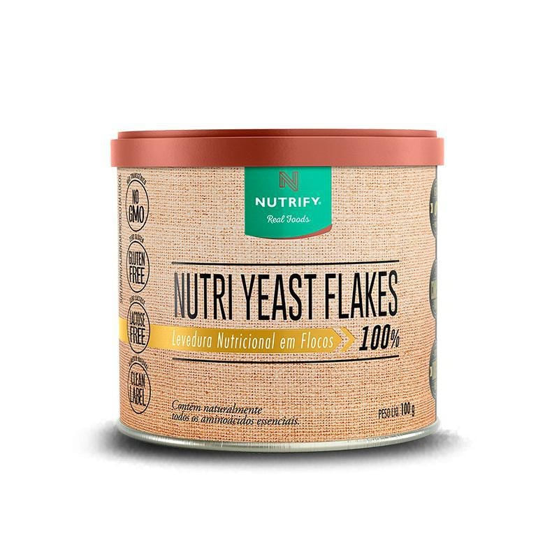 Nutritional Yeast Flakes - 100G - Nutrify..Nutri yeast flakes® é uma levedura inativa originada de fungos (saccharomyces cerevisiae), que, ao contrário das leveduras de cerveja ou fermentos, não promove qualquer tipo de alteração nas características físicas, mas agregam valor nutritivo e sabor às receitas. Trata-se de um alimento que fornece naturalmente proteínas e vitaminas do complexo b, fundamentais para a saúde geral do organismo, além de fibras insolúveis, que auxiliam na digestão, e b-glucanos, com ação de fortalecimento imunológico. Nutri yeast flakes® não tem ingredientes de origem animal, glúten ou lactose. Com textura crocante, é uma forma prática e inovadora de incluir mais saúde e aroma em todas as suas refeições. Os flocos de levedura nutricional têm sabor similar ao de nozes torradas, que algumas pessoas comparam ao queijo parmesão ralado.. .Para que serve:.Nutri yeast flakes®, levedura nutricional em flocos, serve para enriquecer a dieta com proteínas de alto valor biológico, fibras insolúveis, vitaminas e antioxidantes de uma forma prática e natural.. .Sugestão de consumo: Consumir 17,5g (5 colheres de sopa) ao longo do dia, ou conforme orientação de médico ou nutricionista. Perfeito para enriquecer saladas, sopas, legumes, massas e outras receitas. Pode substituir o queijo ralado em preparações.. .Ingredientes: Levedura inativa em flocos orgânica (saccharomyces cerevisiae). Não contém glúten.