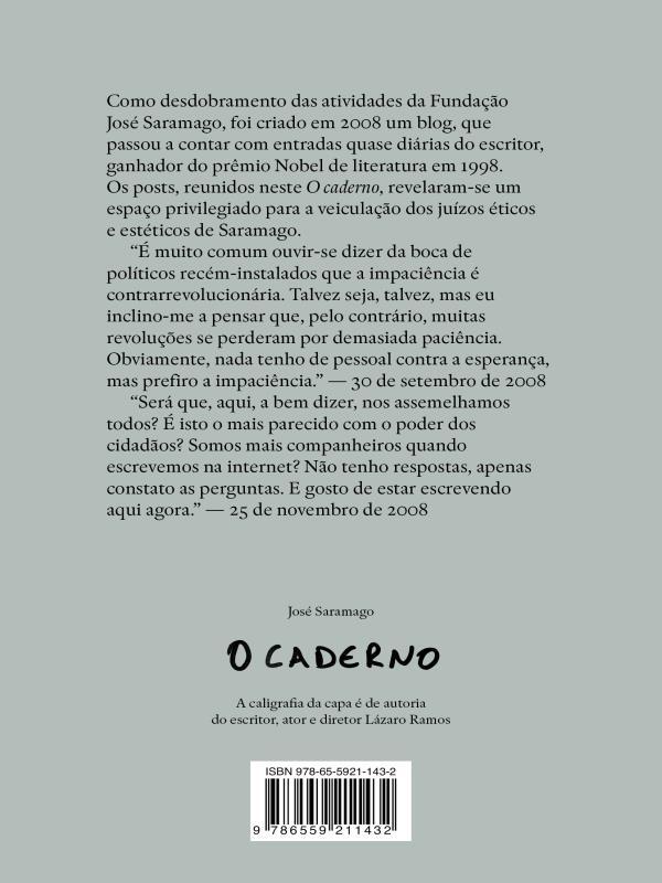o Caderno, Reunião Dos Textos De Saramago Postados Quase Diariamente Em Seu Blog Entre Setembro De 2008 E Março De 2009, É Mais Do Que Uma Simples Coletânea De Crônicas Jornalísticas. É Um Relato De Vida, Um Diário Intelectual E Sentimental Do Único Prêmio Nobel De Literatura Em Língua Portuguesa.