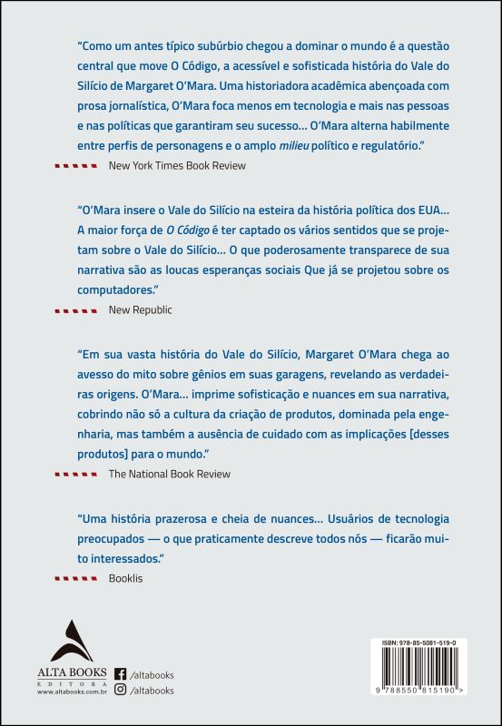 depois De Quase Cinco Anos De Uma Pesquisa Pioneira, O’mara Produziu Para A Nossa Era A História Definitiva Do Vale Do Silício, Uma História De Desbravadores E Visionários, Mas Também De Instituições Ponderosas Criando Os Moldes Para A Inovação, Do Pentágono A Stanford. A História Sobre Uma Comunidade A Princípio Notavelmente Homogênea E Coesa, E Que Continuou Assim, E Cujas Crenças Em Sua Própria Mitologia Aprofundou-se Em Uma Húbris Coletiva Que Acarretou Em Triunfos Estonteantes E Também Em Efeitos Colaterais Devastadores.