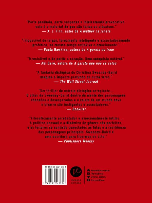 Só Os Homens Contraem O Vírus. Só As Mulheres Podem Salvar O Mundo. Tendo Como Cenário Um Mundo Onde Um Vírus Ataca Apenas A População Masculina, O Fim Dos Homens É Uma Estreia Eletrizante E Inesquecível. O Ano É 2025 E Um Vírus Misterioso Eclodiu Na Escócia — Uma Doença Letal Que Parece Afetar Apenas Homens. Ao Constatar Esse Fenômeno, A Dra. Amanda Maclean É Tida Como Desequilibrada. No Momento Em Que Ela Realmente É Ouvida, Já É Tarde Demais. A Doença Se Torna Uma Pandemia Global — E Política. As Vítimas São Todos Os Homens, De Qualquer Idade. E O Mundo Se Torna Um Mundo De Mulheres. O Que Se Segue São Os Relatos Imersivos Das Mulheres Que Precisaram Lidar Com As Consequências Do Vírus, Narrados Em Primeira Pessoa. Dra. Amanda, Catherine, Uma Historiadora Social Determinada A Documentar As Experiências Humanas Por Trás Da “praga Masculina”, A Analista De Inteligência Dawn, Encarregada De Ajudar O Governo A Forjar Uma Nova Sociedade, E Elizabeth, Uma Das Muitas Cientistas Que Trabalham Desesperadamente Para Desenvolver Uma Vacina. Pelos Olhos Dessas Mulheres E De Outras, Vemos As Inúmeras Maneiras Pelas Quais A Ausência Dos Homens Mudou A Sociedade - Do Aspecto Pessoal, Como A Perda De Maridos E Filhos, Ao Político, Como As Mudanças Na Força De Trabalho, Na Fertilidade E No Significado De Família. Levantando A Questão “como Seria Realmente A Vida Sem Os Homens?”, Christina Sweeney-baird Cria Em O Fim Dos Homens Uma História Inesquecível De Perda, Resiliência E Esperança. “parte Parábola, Parte Suspense E Inteiramente Provocativo, Este É O Material De Que São Feitos Os Clássicos.” - A. J. Finn, Autor De A Mulher Na Janela “impossível De Largar, Ferozmente Inteligente E Assustadoramente Profético, Ao Mesmo Tempo Reflexivo E Emocionante.” - Paula Hawkins, Autora De A Garota No Trem “irresistível E De Partir O Coração. Uma Conquista Notável.” - Abi Daré, Autora De A Garota Que Não Se Calou “a Fantasia Distópica De Christina Sweeney-baird Imagina O Impacto Profundo De Outro Vírus.” - The Wall Street Journal “um Thriller De Estreia Distópico Arrepiante... O Olhar De Sweeney-baird Dentro Da Mente Dos Personagens Chocados E Desesperados E O Relato De Um Mundo Novo E Bizarro São Instigantes E Assustadores.” - Booklist “filosoficamente Arrebatador E Emocionalmente Íntimo... A Política Pessoal E A Dinâmica De Gênero São Perfeitas, E Os Leitores Se Sentirão Conectados Às Lutas E À Resiliência Das Personagens Principais. Sweeney-baird É Uma Escritora Para Ficarmos De Olho.” - Publishers Weekly