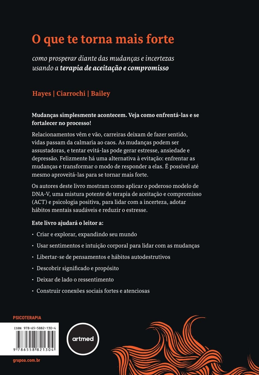 Mudanças Simplesmente Acontecem. Relacionamentos Vêm E Vão, Carreiras Deixam De Fazer Sentido, vidas Passam Da Calmaria Ao Caos. As Mudanças Podem Ser assustadoras, E Tentar Evitá-las Pode Gerar Estresse, Ansiedade E depressão.em O Que Te Torna Mais Forte, louise L. Hayes, joseph V. Ciarrochi E ann Bailey mostram Como Aplicar O poderoso Modelo De dna-v, Uma Mistura Potente De Terapia De Aceitação E Compromisso (act) E Psicologia Positiva, Para lidar Com A Incerteza, Adotar hábitos Mentais Saudáveis E Reduzir O Estresse Enfrentando As mudanças E Transformando O Modo De Responder A Elas.