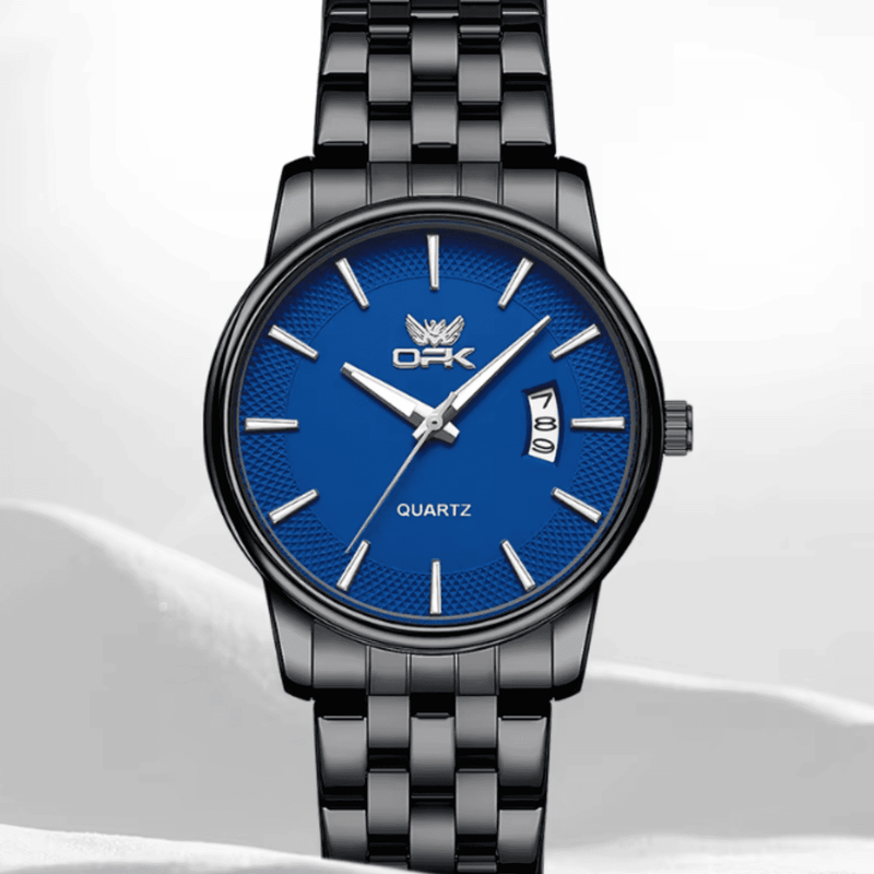 O Relógio Ofk com Calendário é a peça ideal para o homem moderno que busca um acessório que une a sofisticação atemporal do design clássico com a confiabilidade da engenharia de precisão. Este modelo se destaca por seu acabamento em preto de alto brilho ou aço escuro (gunmetal), conferindo uma estética executiva e marcante.