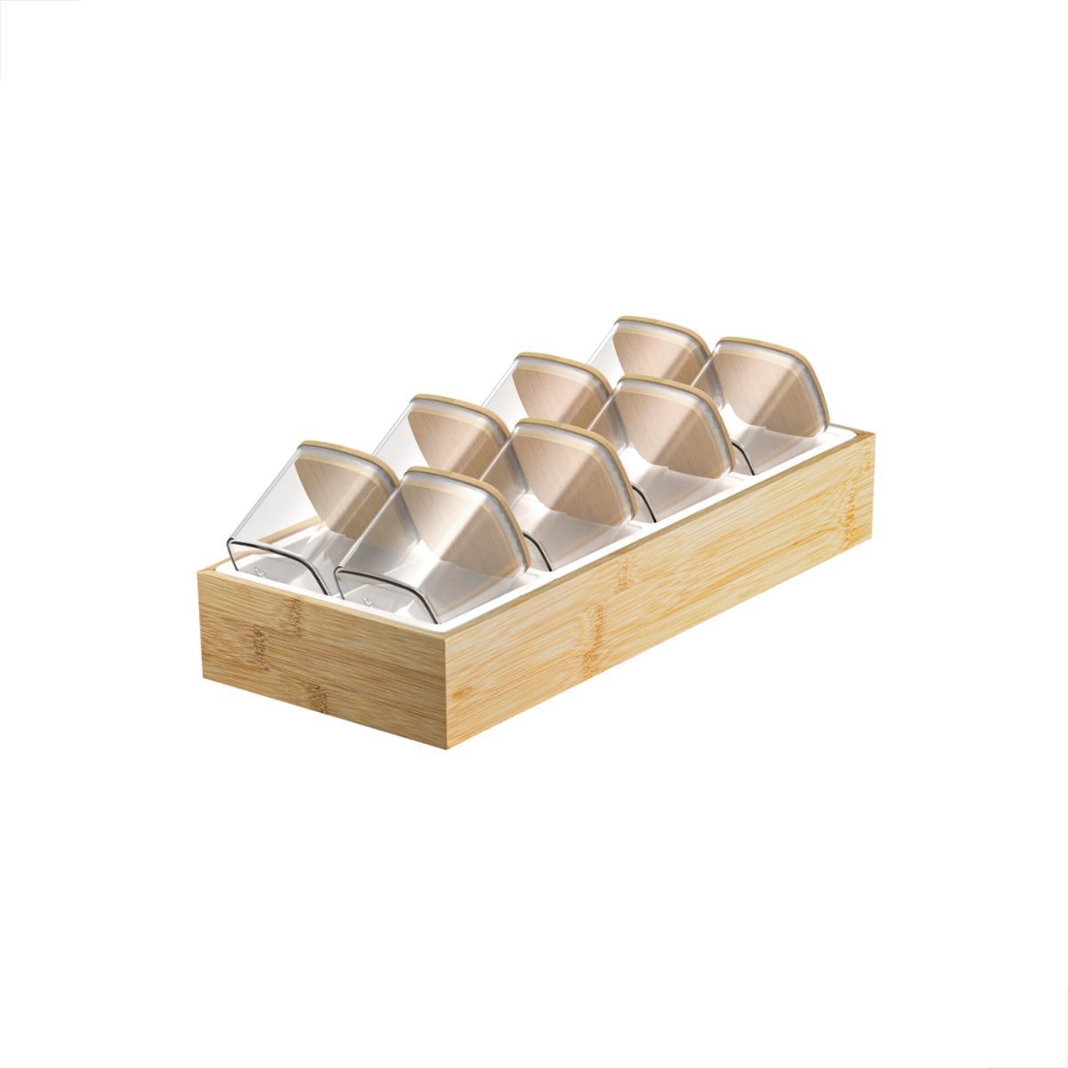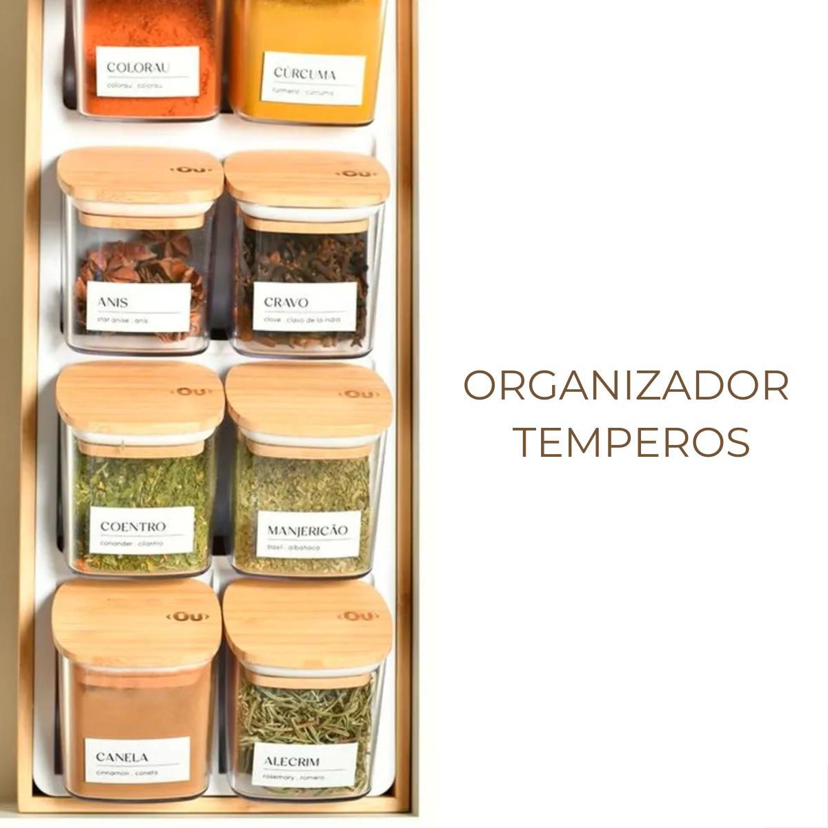 Organizador De Temperos Transparente Com 8 Potes - Bambu