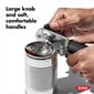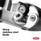 OXO International Soft Handle Can Opener A roda de corte afiada é feita de aço inoxidável e as alças são grandes e amortecidas. Este abridor vem com um abridor de tampa de garrafa embutido. Modelo: 28081 Material: Aço inoxidável Cor: Alça preta Embutida no abridor de tampa de garrafa A roda de corte de corte oversized funciona em qualquer tamanho da tampa Altura: 2 Largura: 3 Comprimento: 7 375373. Lavagem manual só.