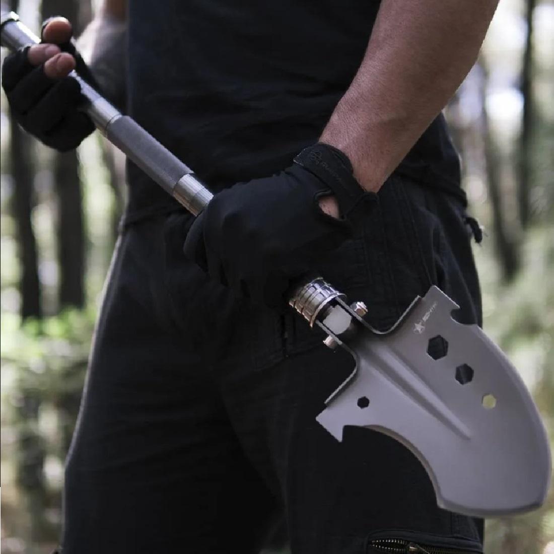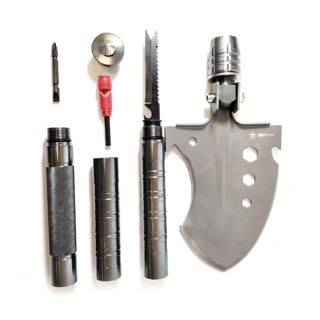 Pá em aço galvanizado do NTK Tático multifunção, prática e compacta FronteraA Pá Dobrável Frontera do NTK Tático é a solução perfeita para quem busca uma ferramenta compacta e completa para se utilizar em campings ou até mesmo para se ter no interior de um veículo. Fabricada em Aço Galvanizado, esta pá possui resistência para enfrentar quase todos os desafios. Diferente de outras pás dobráveis, a Frontera possui um sistema de cabos expansíveis. Sua pá principal possui além de sua função principal, um abridor de lata, 4 diferentes tamanhos de chave de boca e uma lâmina lateral que funciona como um machado. Cada parte do cabo possui uma função, a primeira possui uma serra e uma lâmina que pode ser acoplada. Na segunda parte, há uma chave com duas pontas, uma Philips e uma de fenda. Na terceira e última parte, há um quebra vidros, que se retirado possui um apito e uma pederneira. Quando todas as partes estão encaixadas pelo sistema de roscas, a pá fica com um comprimento de 68cm, sendo perfeita para pequenos e médios trabalhos.Todas as peças da pá são armazenadas em um estojo compacto que acompanha o produto. A compra da Pá Dobrável NTK Tático Frontera é indicada para aventureiros que buscam uma ferramenta prática para utilizar em suas atividades outdoor. Informações gerais: Material: Aço inoxidável e cabo de alumínio Peso: 880g aprox. Dimensões (fechado): 24 x 7 x 17 cm Multifunções: Machado, pá, abridor de garrafa, chave de boca, chave Philips, quebra vidro, apito, magnésio e lâmina Marca: NTK Tático