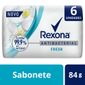 Pack 6 Sabonete em Barra Rexona Antibacterial Fresh 84g cada Leve Mais Pague MenosSabonete em barra Rexona Antibacterial Fresh possui uma combinação exclusiva de ingredientes que, em conjunto, entregam benefícios de limpeza e refrescância. Possui uma fragrância que mistura os deliciosos aromas florais de lavanda e rosa, com notas vigorosas cítricas de limão e laranja.Sensação única de refrescância durante e após o banho, para você sentir suas energias recarregadas. Este sabonete contém glicerina que é um ingrediente hidratante para a pele, proporcionando uma sensação revitalizante, de refrescância prolongada e limpeza profunda.- Compre produtos Rexona
