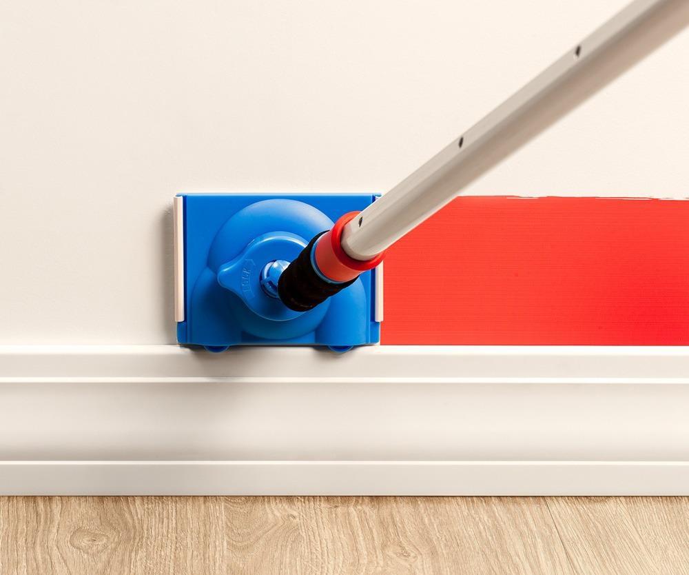 -aplique A Tinta Encostando Os Rodízios Na Parede, Rodapé Ou Marco Que Será O Guia Para O Recorte
