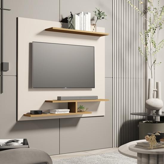 Painel Até 32 Polegadas Com Prateleiras Osiris Plus Off White / Nature - Comprar Moveis Para Sua Casa