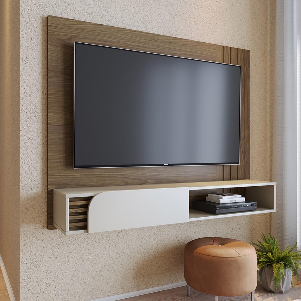 Painel Home Suspenso Jurere Para Tv Até 55" Polegadas Amendoa/off White Matte