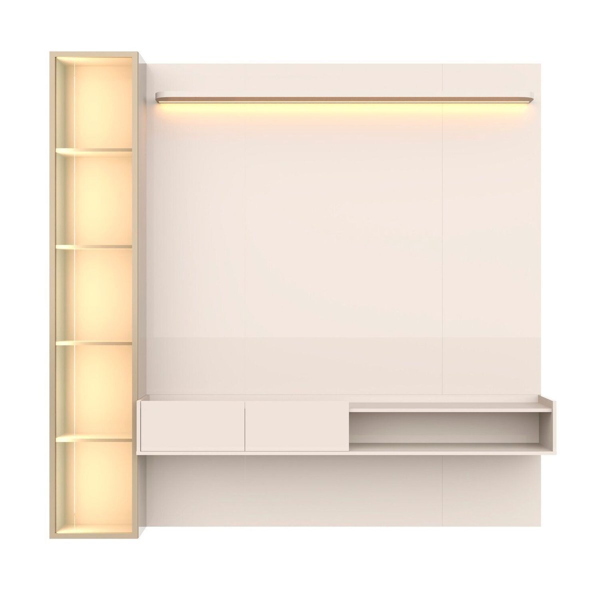 O Painel Vitória Régia é a união perfeita entre design sofisticado , funcionalidade e acabamento premium, ideal para quem deseja transformar a sala de estar em um ambiente moderno e elegante. A iluminação embutida valoriza o painel e cria uma atmosfera acolhedora, destacando a TV e os objetos decorativos. O conjunto conta com cristaleira lateral com portas em vidro reflecta, que proporcionam um efeito elegante e contemporâneo.
