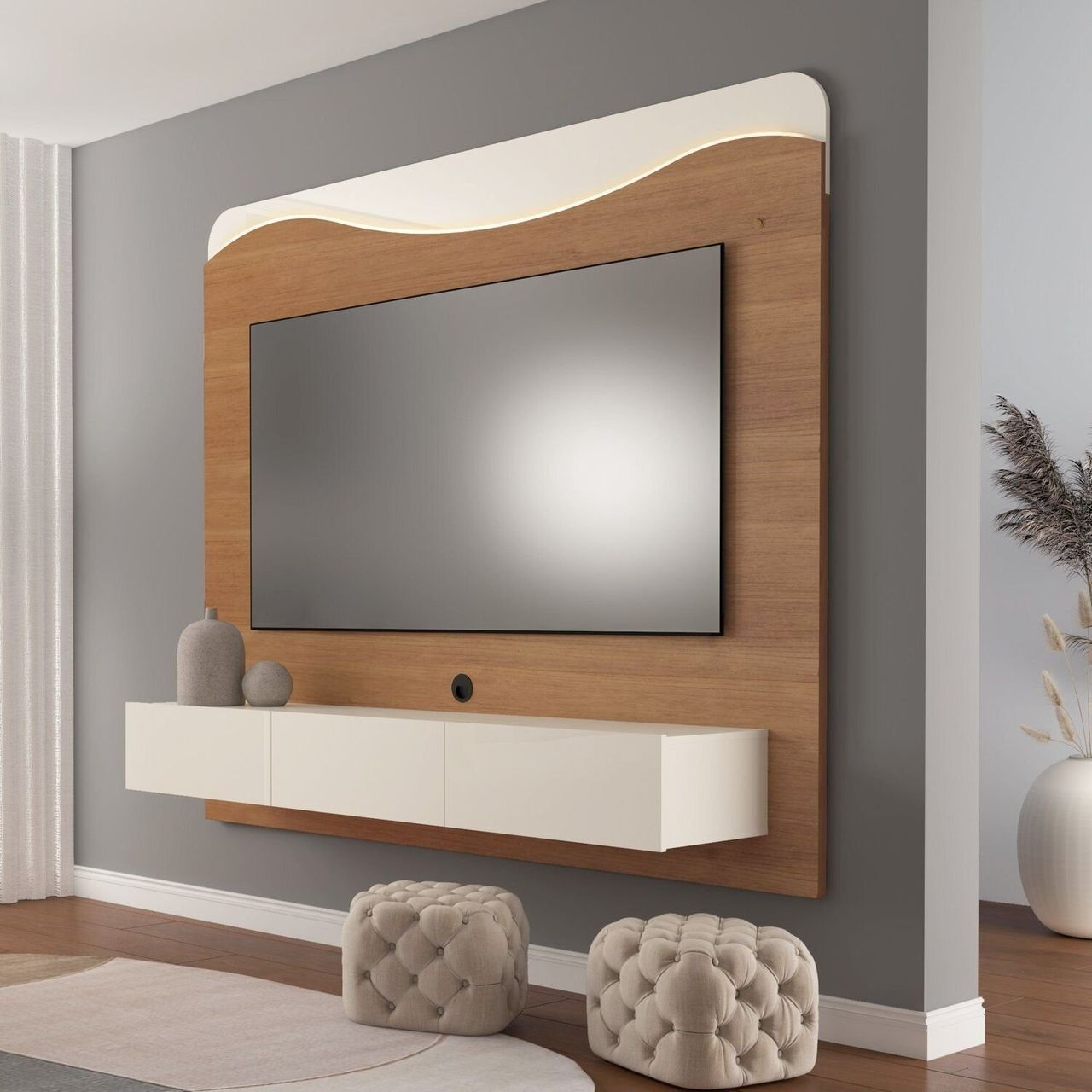 O Painel Lumiere é uma peça sofisticada que transforma o ambiente, unindo design moderno, funcionalidade e acabamento de qualidade. Seu formato curvado traz um visual contemporâneo e elegante, enquanto a luz de LED proporciona um efeito luminoso envolvente que valoriza a TV e cria um clima aconchegante. Pensado para oferecer praticidade, conta com 3 gavetas com corrediças metálicas, ideais para organizar controles, cabos e acessórios, mantendo o ambiente limpo e funcional. Combinando Design Curvado, Iluminação e Amplo Espaço de Armazenamento, o Painel Lumiere é uma solução completa que une beleza, modernidade e utilidade em um único produto.