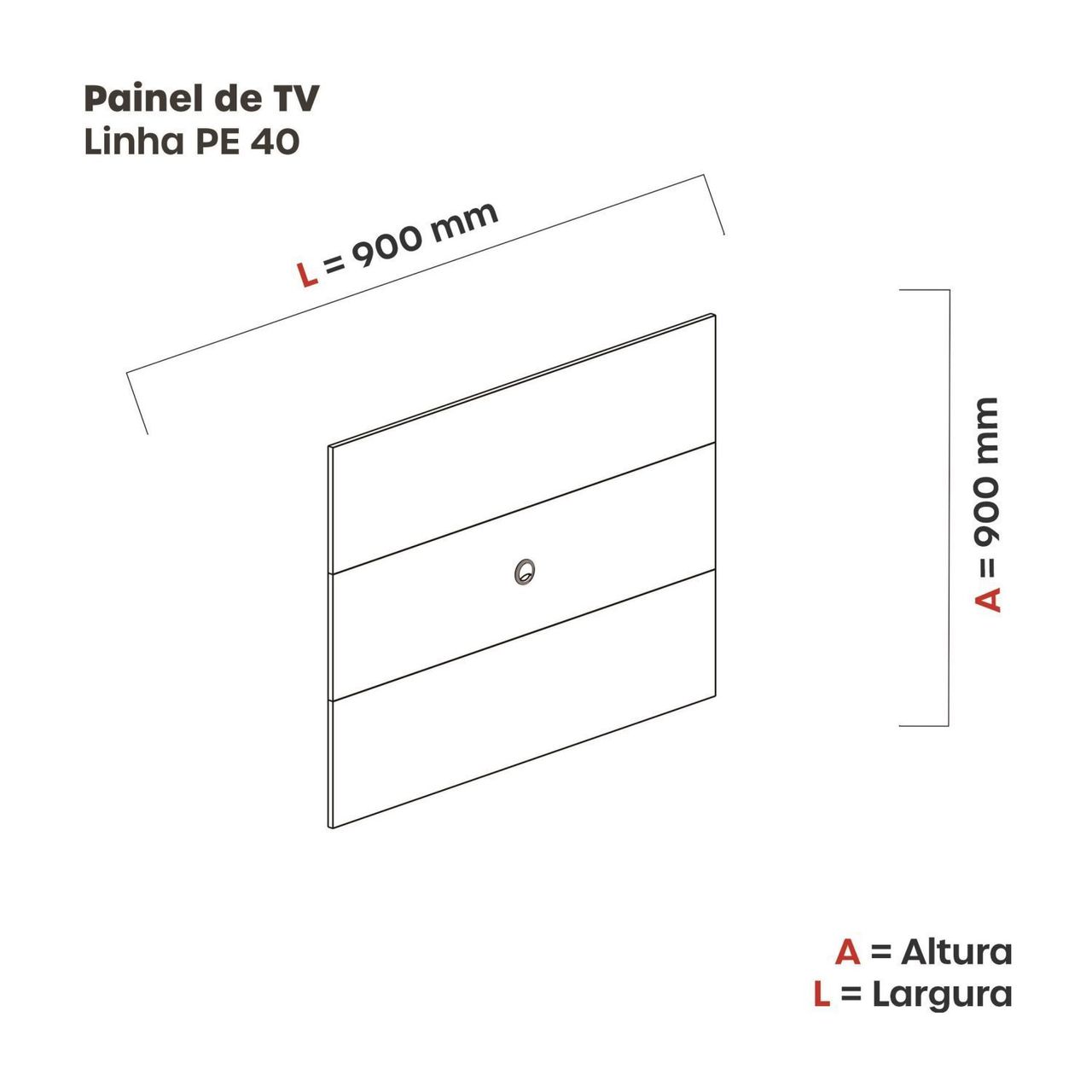 Painel Central De Tv Pandin Linha Pe40, Em Mdp Medindo 90cm De Altura E 90 Cm De Largura 1,5 Cm De Profundidade Ideal Para Completar A Sala De Reunião, Salas De Estar E Ou Outros Ambientes, Suporta Tv De Até 32 Polegadas.