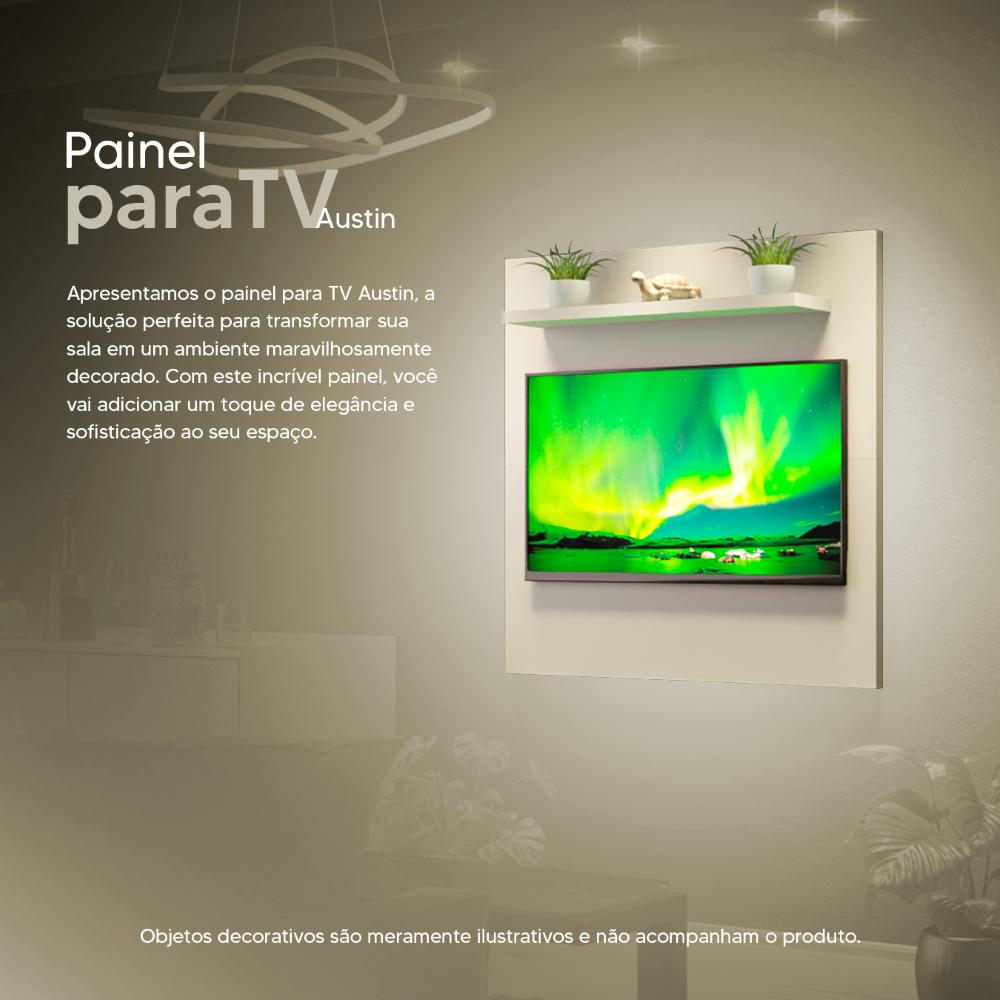 Transforme Seu Ambiente Em Um Espaço De Entretenimento E Convivência Ainda Mais Especial Com O Painel Para Tv Austin. Com Design Moderno E Sofisticado, Esse Painel É O Complemento Perfeito Para Valorizar O Seu Ambiente E Transformar A Sua Experiência De Lazer. Seu Tamanho Garante O Encaixe Perfeito Para Tvs De Até 39 Polegadas, Proporcionando Uma Experiência De Visualização Agradável. A Prateleira Permite Espaço Adicional Para Acomodar Seus Dispositivos Eletrônicos, Decorações E Objetos De Valor Sentimental. Além De Ser Funcional, O Painel Para Tv É Também Uma Solução Prática Para Organizar Os Fios E Cabos Dos Aparelhos Eletrônicos, Mantendo O Visual Do Ambiente Limpo E Livre De Bagunças. Com O Acabamento Na Cor Branca, Esse Painel Acrescenta Um Toque De Estilo E Elegância, Tornando Um Ambiente Acolhedor E Convidativo. * Informações Técnicas: - Medidas Totais Do Painel: 90cm De Largura X 90cm De Altura. - A Prateleira Mede: 70cm De Largura X 15cm De Profundidade. - Suporta Tvs De Até 39 Polegadas. Fabricado Em Mdp 15mm, O Painel Oferece A Resistência E A Durabilidade Necessárias Para Suportar Sua Tv E Acessórios Eletrônicos Com Total Segurança. Produto Vai Desmontado. A Montagem Desse Painel É Simples, Acompanha Acessórios E Manual De Instruções Para Garantir Uma Instalação Rápida E Fácil. A Instalação Do Produto É Por Conta Do Cliente. Importante: Este Anúncio Inclui Somente Um Painel De Tv Modelo Austin Conforme Descrição Acima. Todos Os Elementos Decorativos Das Fotos Não Estão Inclusos.