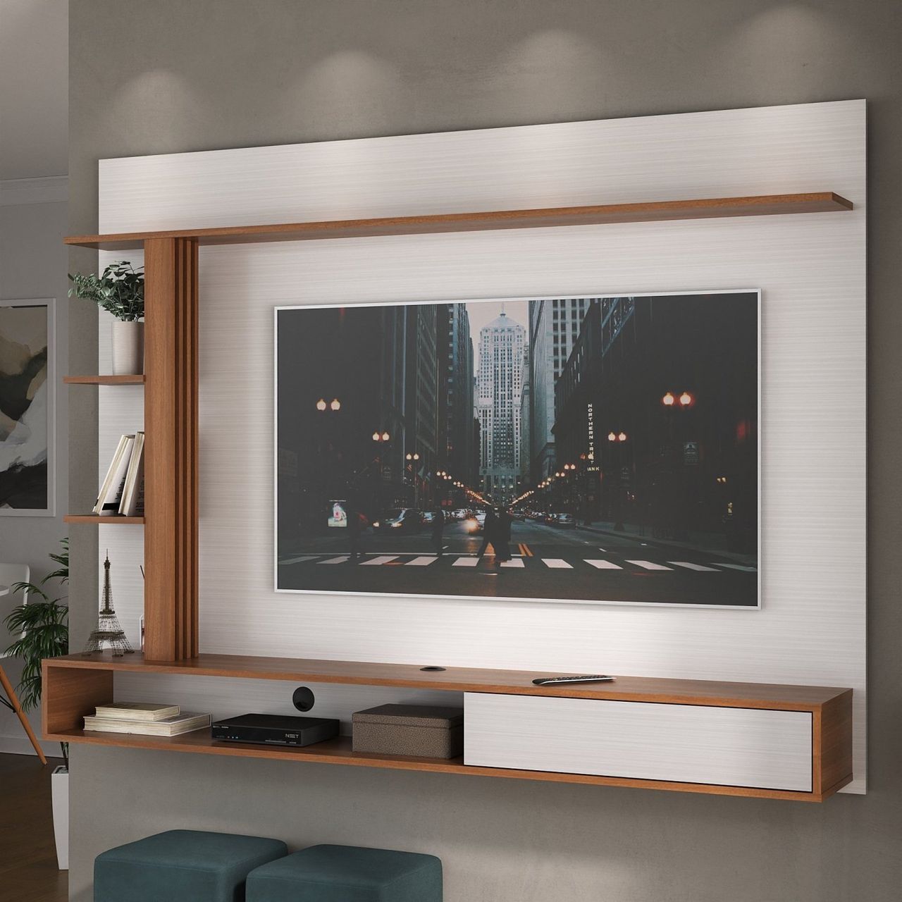 Painel Para Tv Até 60 Polegadas 135cmx180cm 1 Porta 1 Nicho Branco/nogal.