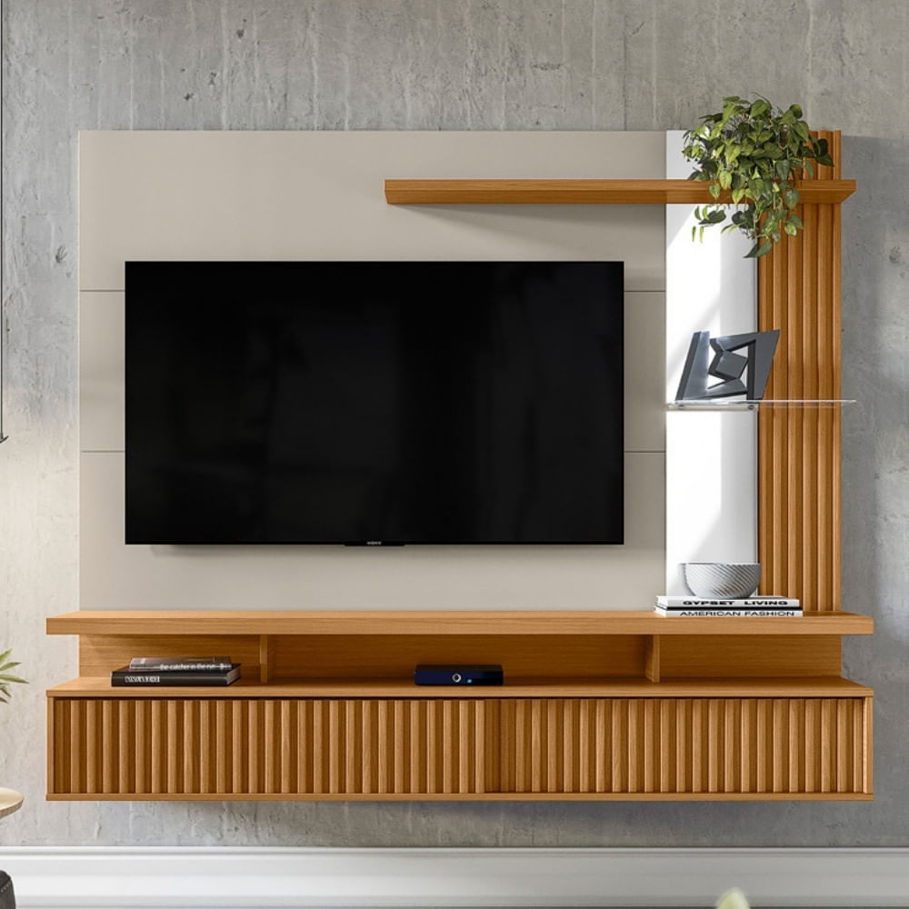 O Amplo Espaço Para Tv De Até 60 Do Painel Home Maragogi Transforma A Sua Sala Em Um Verdadeiro Cinema Para Família E Amigos! Além Disso, Ele Possui Nichos Organizadores, Ideias Para Colocar Aparelhos Eletrônicos. Com Muito Charme Você Pode Exigir Na Prateleira Superior E Prateleira De Vidro Suas Decorações Preferidas. Além De Tudo, O Painel Home Maragogi Dispões De Duas Portas Deslizantes Com Detalhe Em Ripado Para Que Você Possa Guardar Com Estilo Aqueles Objetos Úteis Do Dia-a-dia, Mas Que Não Precisam Aparecer.