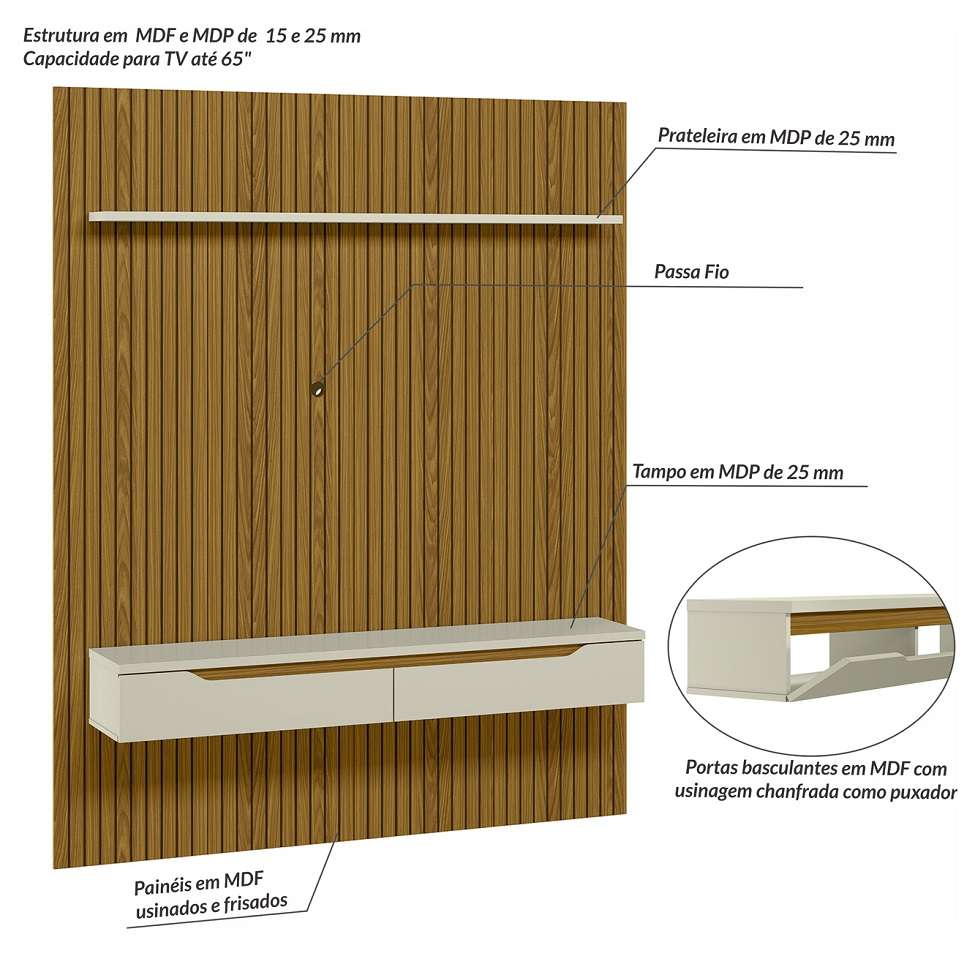 Que Tal O Painel Para Tv Duetto?a Melhor Forma De Deixar A Sua Sala De Estar Bem Equipada E Pronta Para A Rotina É Apostando No Painel Duetto! Dono De Uma Estrutura Bastante Completa Para Ajudar Na Organização De Eletrônicos Ou Enfeites, Ele Apoia Tvs De Até 65 Polegadas, Deixando O Aparelho Em Uma Altura Ideal Para Curtir Um Filminho Ou A Sua Série Preferida. Por Ser Fixo À Parede, Ele É Ideal Para Ambientes Que Não Têm Tanto Espaço Disponível, Mas Que Não Podem Deixar A Praticidade De Lado - O Design Tradicional Ganha O Reforço Da Cor Harmônica E Charmosa, Que Cai Bem Com A Décor De Um Lar Aconchegante. De Quebra, O Acabamento Ripado Agrega Um Toque De Elegância Ao Móvel, Reforçando A Beleza Do Lar-style.