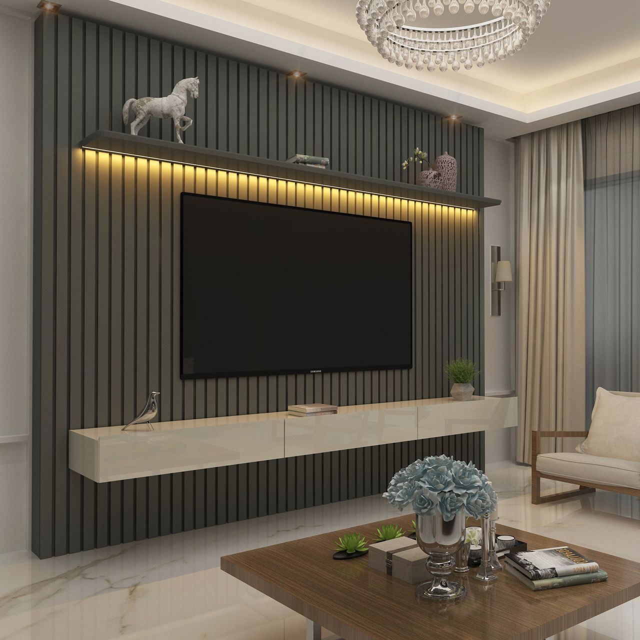 Painel Ripado Tv Até 85 Polegadas Com Led 230cm Nobre Gelius Móveis Grafite/off White