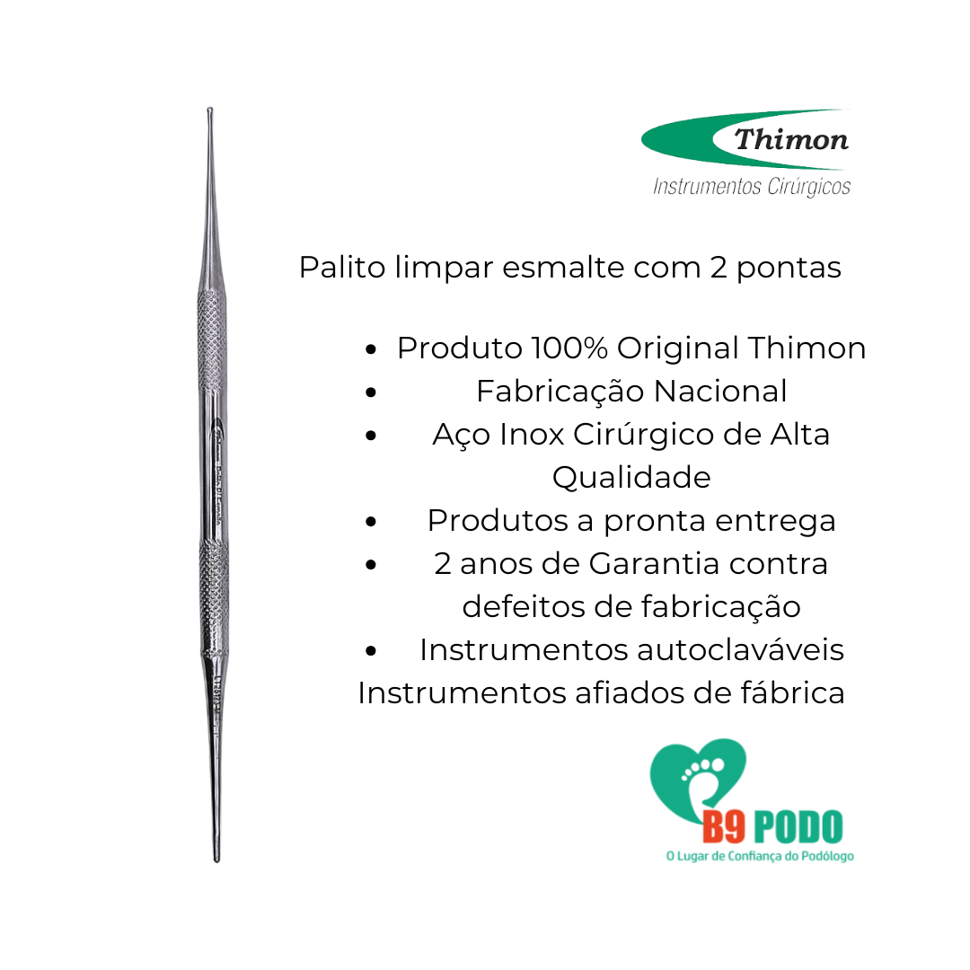 O Palito Para Limpar Esmalte Thimon É A Ferramenta Indispensável Para Quem Busca Perfeição Nas Unhas! Com Design Ergonômico E Leve, Ele Facilita A Remoção Dos Excessos De Esmalte Com Suavidade E Precisão. Produzido Em Aço Inoxidável Aisi 420, Oferece Durabilidade E Segurança, Sendo Ideal Para O Uso Profissional Em Salões Ou Em Casa. E O Melhor: Pode Ser Esterilizado Em Autoclave, Garantindo Total Higiene. Destaques Do Produto: Alta Precisão Na Limpeza De Esmaltes Com Algodão Fabricado Em Aço Inox Aisi 420 – Máxima Resistência E Durabilidade Comprimento Perfeito De 13,5 Cm Para Fácil Manuseio Espessura Do Cabo: 5 Mm | Diâmetro Das Pontas: 1,5 Mm Acabamento Impecável Para Unhas Profissionais Produto Nacional E Original 1 Unidade Por Embalagem Esterilizável Em Autoclave – Higiene Garantida! Palito Thimon: Porque Cada Detalhe Conta No Seu Acabamento!