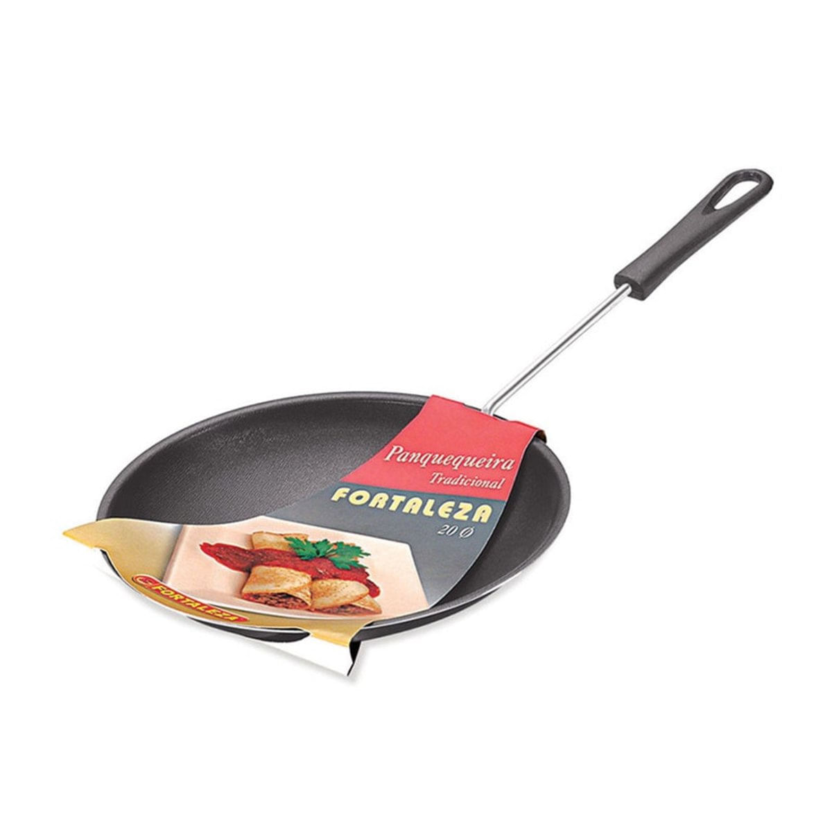 Panquequeira Tradicional N20 - Fortaleza.Produto fabricado com alumínio 100% puro e aplicação de antiaderente de qualidade máxima, os alimentos não grudam em sua superfície, o que ajuda a evitar o uso exagerado de gordura no preparo dos alimentos, deixando-os mais saudáveis..Alumínio Fortaleza, conta hoje com modernas instalações onde idealiza e fabrica os produtos Fortaleza, aliando design, qualidade, utilidade e preço para assegurar a plena satisfação dos clientes...Composição: Corpo e rebite em alumínio, revestimento em antiaderente, interno e externo, cabo em baquelite e resistente a lava louças.