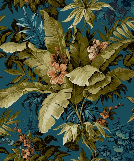 Papel De Parede Muse Folhagem Verde E Azul A55801
