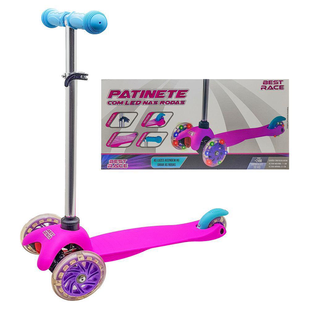 Patinete Infantil Com 3 Rodas E Leds Rosa