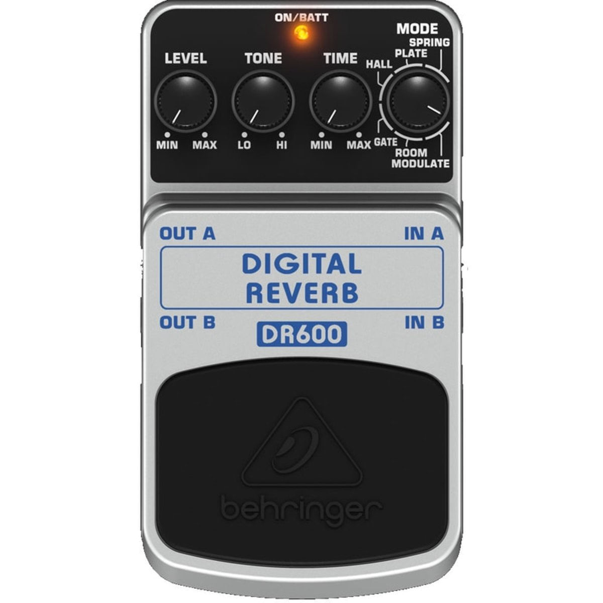 Marca: Behringer.Modelo: DR600.Uso em Guitarras, Baixos e Teclados.O regulador Level controla a intensidade sonora de saída. .Tone pode alterar a sonoridade do conjunto de tons. .Time ajusta o tempo de duração da ressonância..Com o regulador Mode, pode escolher entre 6 Reverbs diferentes:.Spring: simula a reverberação clássica de mola..Plate: simula o som do reflexo em uma placa metálica..Hall: simula os reflexos de uma grande sala de concertos. .Gate: este efeito corta artificialmente o som a partir de um determinado parâmetro. .Room: simula a acústica natural de um quarto. .Modulate: através de uma ligeira desafinação, é criado um som de espaço amplo que lembra um pouco efeito de coro..Dimensões : 11 x 6 x 5 cm.Peso: 0,425 Kg.Garantia : 6 Meses