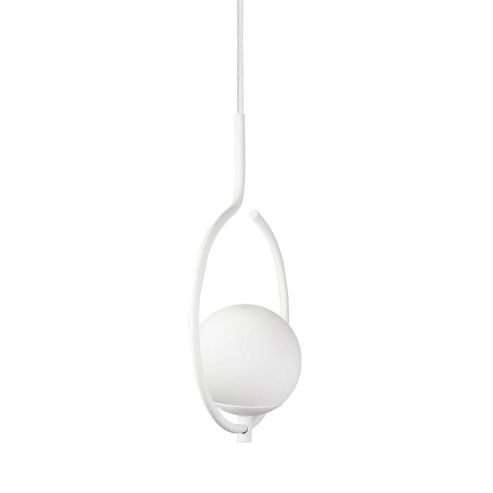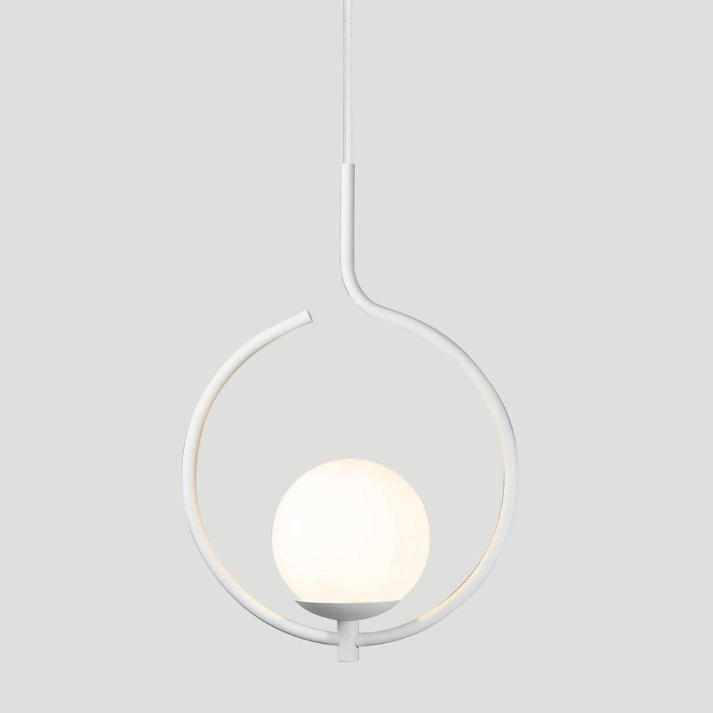 Pendente Lustre On Loop Branco Com Globo De Vidro Brancolustre Pendente On Loop, Design Minimalista Ao Seu Estilo. Descrição Técnica: - Modelo: On Loop - Acabamento: Pintura Térmica - Material: Aluminio E Vidro - Tamanho (lxa): 25 Cm X 36 Cm - Cabo: 70 Cm(regulável) - Soquete: Padrão G9 - Bivolt: Sim - Canopla: 12 Cm * Lâmpadas Vendidas Separadamente.