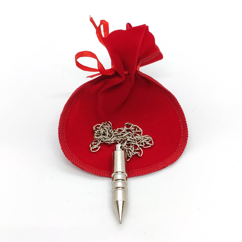 Pêndulo de aço para Radiestesia e Radiônica - Prata O Pêndulo Master Chi foi projetado por especialistas em radiestesia com o uso da geometria sagrada e numerologia. Todas as suas dimensões lineares, ângulos e até o seu peso trazem a frequência numérica da conexão com o divino e a evolução dos níveis de consciência humana, resultando em um equipamento com alta sensibilidade. Esse diferencial proporciona ao usuário o seu mais alto desempenho. Com o uso do Pêndulo você pode: • Obter respostas para perguntas sobre diversos assuntos. • Fazer limpeza energética dos ambientes. • Fazer limpeza das energias negativas de objetos. • Fazer uso terapêutico para definir qual o melhor floral, a cor, a pedra ou para qualquer outro tipo de tratamento que um terapeuta utiliza com seus clientes. • Receber orientação para tomada de decisões em seu negócio ou emprego. • Identificar nos ambientes o local exato de um ponto de energia telúrica nociva. • Localizar objetos ou pessoas perdidas. • E muito mais! Especificações: Pêndulo para Radiestesia e Radiônica contém: 1 Pendulo Prata 1 Saquinho de veludo vermelho Dados Técnicos: Material: Pêndulo em aço carbono ou Pêndulo em aço carbono, com banho prata Saquinho em veludo vermelho Validade: Permanente