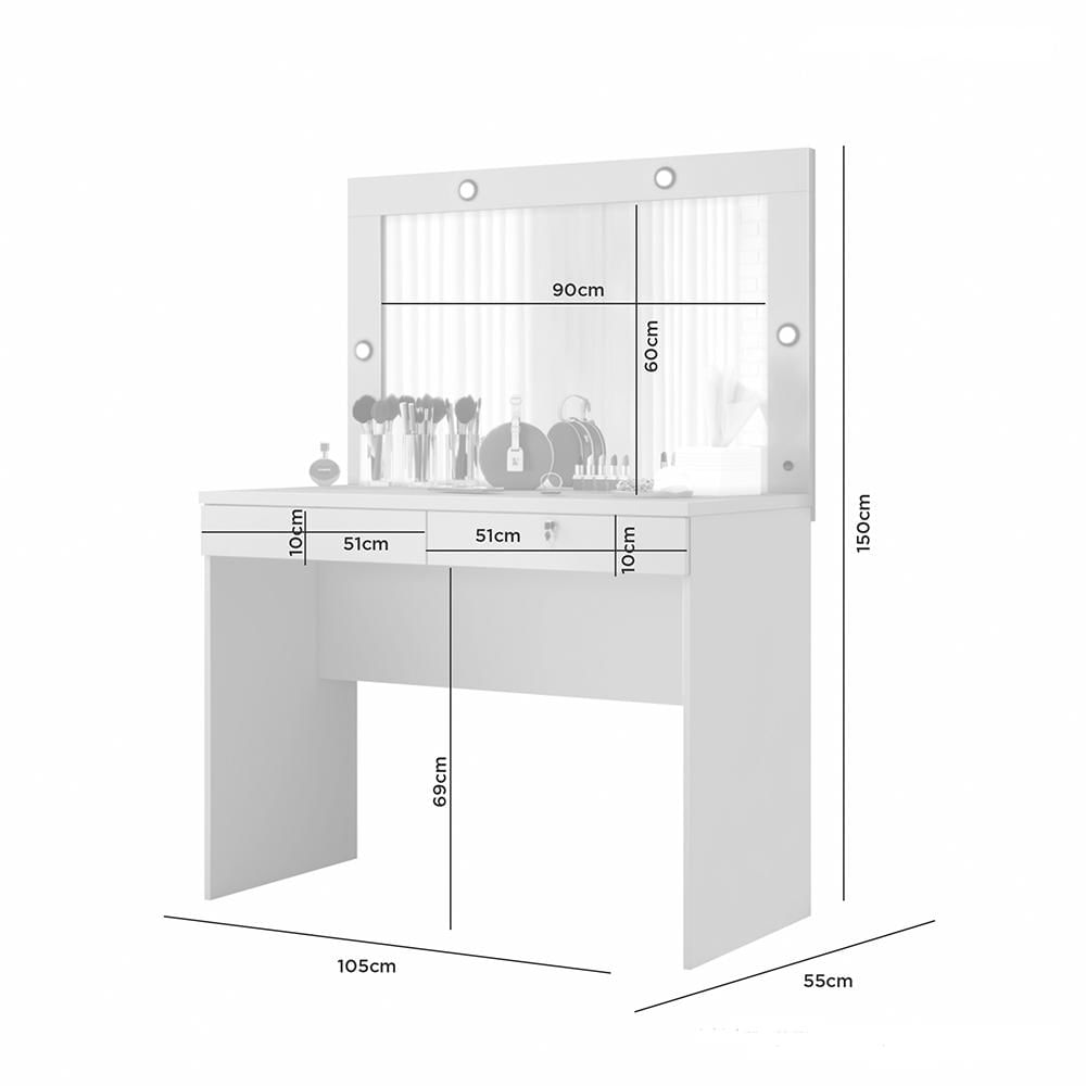 Modelo: Camarim Capricho, Material: Mdp 15mm Com Tampo De 25mm, Espelho 90cm X 60cm E 3mm, Largura: 105 Cm, Altura: 150 Cm, Profundidade: 55 Cm, Acabamento: Pintura, Acompanha Lâmpada: Sim, 04, Lâmpada: Led E Acompanha O Interruptor, Quantidade De Portas: Não Se Aplica, Tipo De Dobradiças: Não Se Aplica, Quantidade De Gavetas: 02, Sendo 1 Com Chave, Tipo De Corrediças: Telescopias, Com Puxador: Não Se Aplica, Material Do Puxador: Não Se Aplica, Quantidade De Prateleiras: Não Se Aplica, Peso Suportado: 40 Kg Distribuídos, Requer Montagem: Sim (kit Montagem Incluso), Condição Do Item: Novo, É Kit: Não, Altura Da Embalagem: 19 Cm, Largura Da Embalagem: 63 Cm, Comprimento Da Embalagem: 111,5 Cm, Peso: 38,150 Kg Embalagem Do Envio: Papelão E Plástico. Informações Adicionais: - Os Objetos Que Ambientam As Fotos Não Acompanham O Produto, - O Produto Será Entregue Desmontado - É De Inteira Responsabilidade Do Cliente A Montagem Do Produto E/ou Instalação, Custos De Transporte Por Escadas E/ou Elevadores, Guincho Ou Içamento, Assim Como Possíveis Irregularidades Provenientes De Manuseio Inadequado, - Embora O Produto Acompanhe O Manual De Montagem, Verifique A Complexidade Antes De Decidir Montá-lo Sozinho, Recomendamos Que Contrate Um Profissional De Sua Confiança, - Fique Atento, Nossas Cores Podem Sofrer Alterações Dependendo Do Seu Monitor, - Antes De Montar O Seu Produto, Certifique-se Que Todas As Instruções Dispostas No Manual, Bem Como Todas As Ferragens Descritas, Estejam Presentes Dentro Da Embalagem. Verifique Se Há Alguma Peça Danificada, Caso Esteja, Prestaremos A Devida Assistência Dentro Do Prazo Da Garantia.