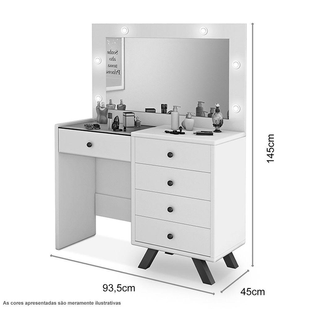 Penteadeira Camarim Com Espelho E Led Com Banqueta Luna Branco - Luapadimensões Do Produto Montado:altura: 145 Cmlargura: 93,5 Cmprofundidade: 45 Cmobservações:-desenvolvida Em Mdp E Mdf- Quadro De Espelho- Gavetas Com Corrediças Telescópica- Pés De Madeira- Tampo De Vidroinformações Adicionais:- Verifique O Tamanho E Os Detalhes Do Produto Antes De Realizar A Compra.- As Fotos São Meramente Ilustrativa. Objetos Decorativos Que Aparecem Nas Imagens Não Acompanham O Produto.- A Transportadora Entregará O Produto No Portão E/ou Portaria Da Residência, Ou Ainda, Somente No Andar Térreo, Em Caso De Prédios, Do Endereço De Entrega.- Avaliar A Mercadoria No Ato Do Recebimento E Recusar Em Caso De Divergência Ou Avarias.
