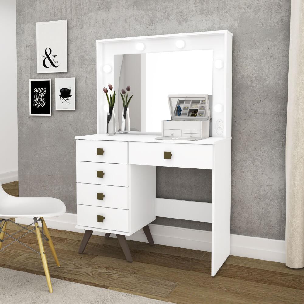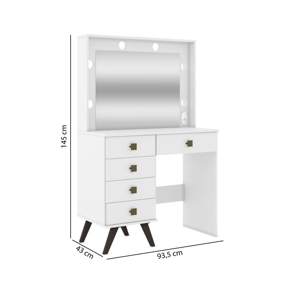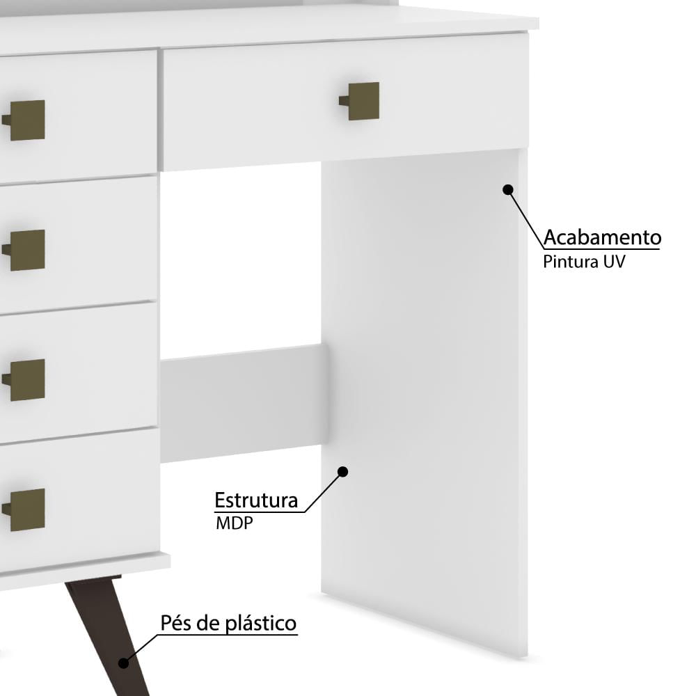 Penteadeira Camarim Retrô Com 5 Gavetas E Espelho - Brancoa Penteadeira Retrô Vai Transformar Seu Quarto Num Verdadeiro Camarim! O Design Moderno E Elegante Vai Fazer Você Se Sentir Uma Verdadeira Estrela! A Penteadeira É Toda Em Mdp, Com O Acabamento Uv Que Dá Mais Qualidade E Durabilidade Ao Produto! O Espelho Embutido Dá Mais Amplitude E Requinte Ao Ambiente, Com Soquetes Para Lâmpadas (que Não Acompanham), E Cinco Gavetas Para Melhorar A Organização Das Suas Maquiagens E Objetos Pessoais.mdppainel De Madeira Formado Por Partículas De Madeira De Média Densidade, É Também O Mais Consumido No Mundo. É Produzido Em Prensas Contínuas De Última Geração, Sendo Um Dos Produtos Mais Tecnológicos E Econômicos Para Produção De Móveis De Linhas Retas Ou Que Precisam Receber Pinturas E Revestimentos De Qualquer Material. Apresenta Excelente Resultado Em Móveis Para Dormitórios, Escritórios, Cozinhas, Painéis Para Decoração, Prateleiras, Tampos E Base Superior/inferior. Com O Manuseio Correto E Dispositivos De Montagem, Pode Ser Montado E Desmontado Quantas Vezes For Necessário.garantia3 Meses De Fábricacaracterísticas- Branco- Estrutura: Mdp- Acabamento: Pintura Uv- Espelho- Soquetes Para Lâmpadas- 5 Gavetas- Corrediças Metálicas- 4 Pés Retrôs Em Plástico- Peso Suportado: 25 Kg- Móvel Entregue Desmontado. Montagem Não Inclusa- Marca: Móvel Bentodimensõespeso: 39,5 Kgaltura: 145 Cmlargura: 93,5 Cmprofundidade: 43 Cmoutras Informações- Montagem Não Inclusa.- Na Limpeza Não Utilizar Produtos Químicos E Abrasivos, Usar Apenas Um Pano Umedecido, Para Garantir A Maior Durabilidade Do Móvel.- Os Objetos Que Ambientam As Fotos Não Acompanham O Produto.- Imagens Meramente Ilustrativas. Cores E Tonalidades Podem Variar.- Antes De Comprar O Seu Produto Verifique As Medidas, O Local Onde Pretende Instalar E Se É Necessário Contratar O Serviço De Um Profissional Qualificado.
