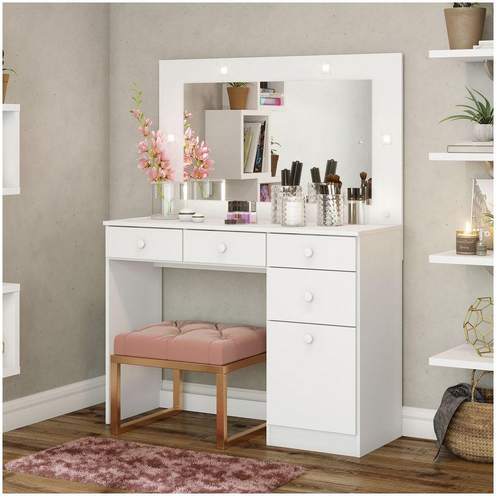 Penteadeira Com Led Chanel Henn Branco Hpcheia De Requinte A Penteadeira Chanel É Perfeita Para Encantar Seu Ambiente Com Muita Elegância. Produzida Em Estrutura Mdp E Excelente Acabamento Em Pintura U.v. , Que Proporcionam Maior Durabilidade E Resistência Ao Móvel. Possui 1 Porta E 4 Gavetas Para Organizar Os Objetos Que Mais Gosta. Possui Ainda Um Espelho Fixado Em Painel De Mdp Com Iluminação De Leds. Ela É Ideal Para Satisfazer Sua Necessidade, É Compacta, Moderna E Super Funcional. Você Vai Conseguir Organizar Seus Produtos De Cuidados Com A Pele, Cuidados Com O Corpo, Maquiagens, Perfumes E Escolher Aquela Roupa Para Qualquer Evento. Ela Pode Ser Montada Em Qualquer Ambiente Como Quartos, Closets E Estúdios. Altura De 1.455 Mm, Largura De 1.100 Mm E Profundidade De 415mm. Com Puxadores Em Abs, Que Garantem Maior Segurança E Praticidade A Utilizar O Móvel.características Gerais:estilo: Modernolinha: Chanelambiente Principal: Quartomarca: Hennorigem: Nacionalgarantia Do Fornecedor: 3 Mesesitens Inclusos: 1 Penteadeira Chanel E Instrução De Montagematenção / Importante:necessita Montagem: Simsistema De Montagem: Parafusos E Cavilhasmontagem Flex: Não.complexidade De Montagem: Média Pode Ser Montado Por Mais De Uma Pessoa Ou Necessitar Maior Conhecimento De Montagem.montagem/instalação A Cargo Do Cliente. Não Dispomos De Montadores. Mas Acompanha Manual Para Montagem, Bastante Intuitivo.recomendações De Uso, Manutenções E Limpeza: Para Limpeza De Seu Móvel, Use Uma Flanela Limpa E Seca. Não Utilize Produtos Químicos Que Possam Danificar O Produto.as Cores Podem Sofrer Alterações Devido A Luminosidade, Monitor E A Percepção Do Usuário.desmontagens, Subir Escadas/elevadores Ou Transporte Por Guincho Para Apartamentos, E Suas Despesas São A Cargo Do Cliente.eletros, Eletrônicos E Decorações Não Acompanham O Produto.ficha Técnica:cor Interna: Trama Brancoacabamento: Pintura Uvescala De Brilho: Na Cor Branca: Foscomaterial Principal: Mdpmaterial Do Fundo: Mdfqtd. Gavetas: 04peso Máximo Por Gaveta: 3 Kgmaterial Do Puxador Gaveta: Absmaterial Da Corrediça: Metálicasmaterial Da Gaveta: Mdpqtd. Portas: 01material Da Dobradiça: Metálicasmaterial Do Puxador Porta: Abstipo Porta: Baterqtd. Pés: Não Possuiproduto Suporte Até (kg): 28 Kgpossui Vidro: Nãopossui Espelho: Simmedida Do Espelho: 85 X 48 X 0,3 Cmpossui Iluminação: Simtampo Basculante: Nãopossui Organizador De Gaveta: Nãopossui Porta Objetos: Nãopossui Nichos: Nãomedidas Montado: 145,5 X 110 X 41,5 Cmpeso Montado: 34 Kgcor: Cor