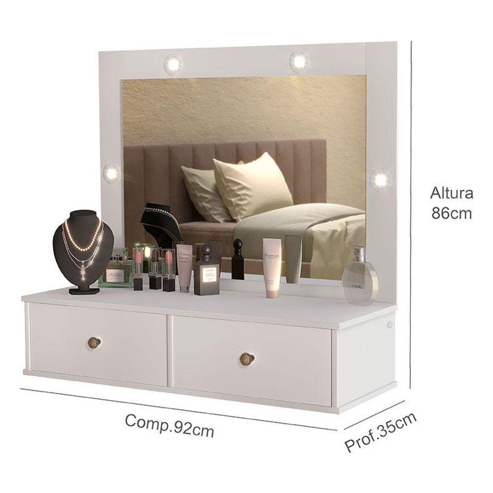 Penteadeira Suspensa Isis Branco - Luapa Móveispenteadeira Suspensa Isis Branco Luapa Móveisa Penteadeira Suspensa Isis Fabricada Pela Luapa Móveis É Perfeita Para Quem Busca Funcionalidade Sem Abrir Mão Do Estilo, Seu Formato Suspenso Oferece Leveza Visual Ao Ambiente, Além De Permitir Uma Melhor Utilização Da Área Inferior, Perfeita Para Cadeiras, Puffs Ou Organização Extra. A Penteadeira Possui 02 Gavetas Sendo 01 Com Nicho E Corrediças Telescópicas, 04 Leds Integrados Garantindo Uma Iluminação Perfeita Para Maquiagem E Cuidados Diários, Acompanha Espelho, Mdp 12mm Nas Laterais Das Gavetas, Restante Todo 15mm E 02 Réguas Para Fixar Na Parede. A Penteadeira Suspensa Isis É Perfeita Para Valorizar Seus Momentos De Autocuidado Com Muito Estilo, Aproveite!características Técnicas:penteadeira Suspensa Isis Branco Luapa Móveis- Desenvolvido Em 100% Mdp- Acabamento Uv- Pintura Na Cor Branco Brilho- Possui 02 Gavetas- Possui 01 Nicho- Possui 04 Led- Possui 02 Réguas Para Fixar Na Parede- Acompanha Espelho- Corrediças Telescópicas- Design Modernodimensões:altura: 86 Cmlargura: 92 Cmprofundidade: 35 Cm Informações Importantes:- Nossas Cargas Possuem Seguro, Portanto, No Ato Da Entrega, Confira A Quantidade De Volumes Recebida, E Também O Estado Da Embalagem. Se Houver Qualquer Inconsistência, Não Assine O Comprovante De Entrega,- O Armazenamento Do Produto No Endereço De Entrega É De Responsabilidade Do Comprador. Evite Apoiar O Produto Na Vertical, Bem Como Evite Áreas Que Deixem O Produto Exposto A Chuva Ou Umidade Excessiva,- Pequenas Variações De Tonalidade São Possíveis, Em Razão Da Diferença De Resolução Da Tela Onde O Anúncio Está Sendo Visualizado. Se Notar Diferença Expressiva, Comunicar A Empresa Antes De Efetuar A Montagem,- O Serviço De Entrega Contratado Contempla A Entrega Até A Primeira Área Coberta Ou Portaria, Não Sendo Coberto O Ato De Subir Escadas/elevadores Ou Adentrar Nas Residências,- Não Nos Responsabilizamos Pela Montagem, Desmontagem Ou Instalação Do Produto.
