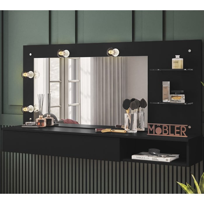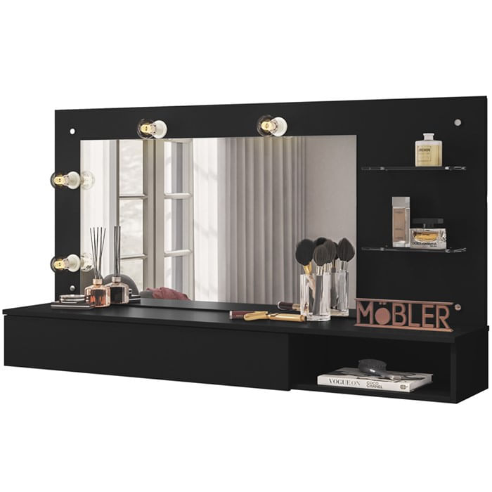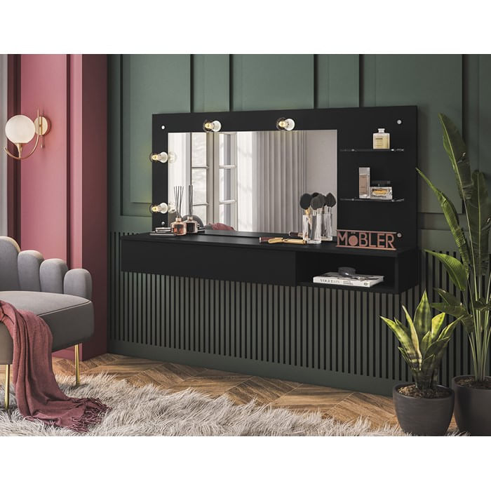Penteadeira Camarim Suspensa 3003031, É Ideal Para Você Que Precisa De Iluminação Para Fazer Aquela Maquiagem Ou Penteado Perfeito. Estrutura Em Mdp De 15mm, Pintura Com Revestimento Mob Print (fosco). Composta Por Gaveta Diferenciada Com Organizador Embutido E Corrediças Metálicas, Pinos Decorativos, 04 Soquetes Acoplados Na Moldura Do Espelho Para Lâmpadas (lâmpadas Não Inclusas), Amplo Espelho, 02 Prateleiras De Vidro Para Acomodar Seus Pertences E Objetos, Nicho, Este Produto Deverá Ser Fixado Na Parede, A Altura Mínima Sugerida É De 75 Cm. Perfeita Para Organizar Suas Maquiagens Ou Outros Produtos Proporcionando Praticidade E Conforto. Este Móvel Chegará Na Sua Casa Separado Em 01 Volume.