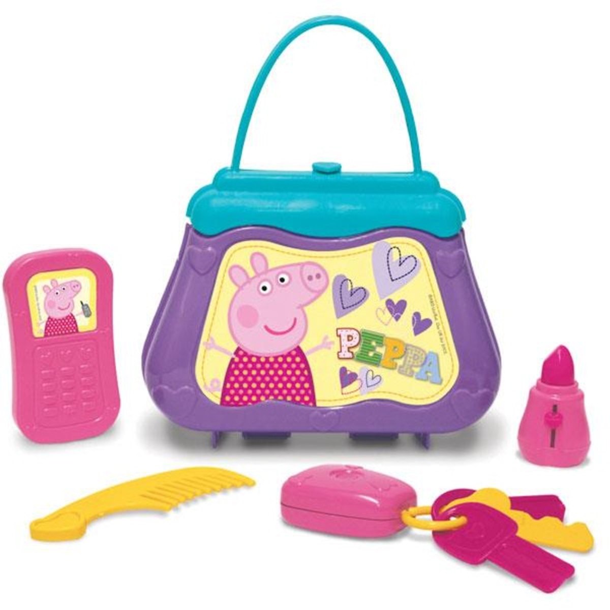 Na bolsa da mamãe tem tudo: celular, pente, batom e a chave do carro. Não é o máximo? .Agora é só sair para passear levando sua bolsinha, igual a mamãe. ..Itens inclusos: .1 bolsa.1 celular.1 chaveiro.1 batom.1 pente ..Código INMETRO/ ANVISA CE-BRI/IQB 005352..REV 064789